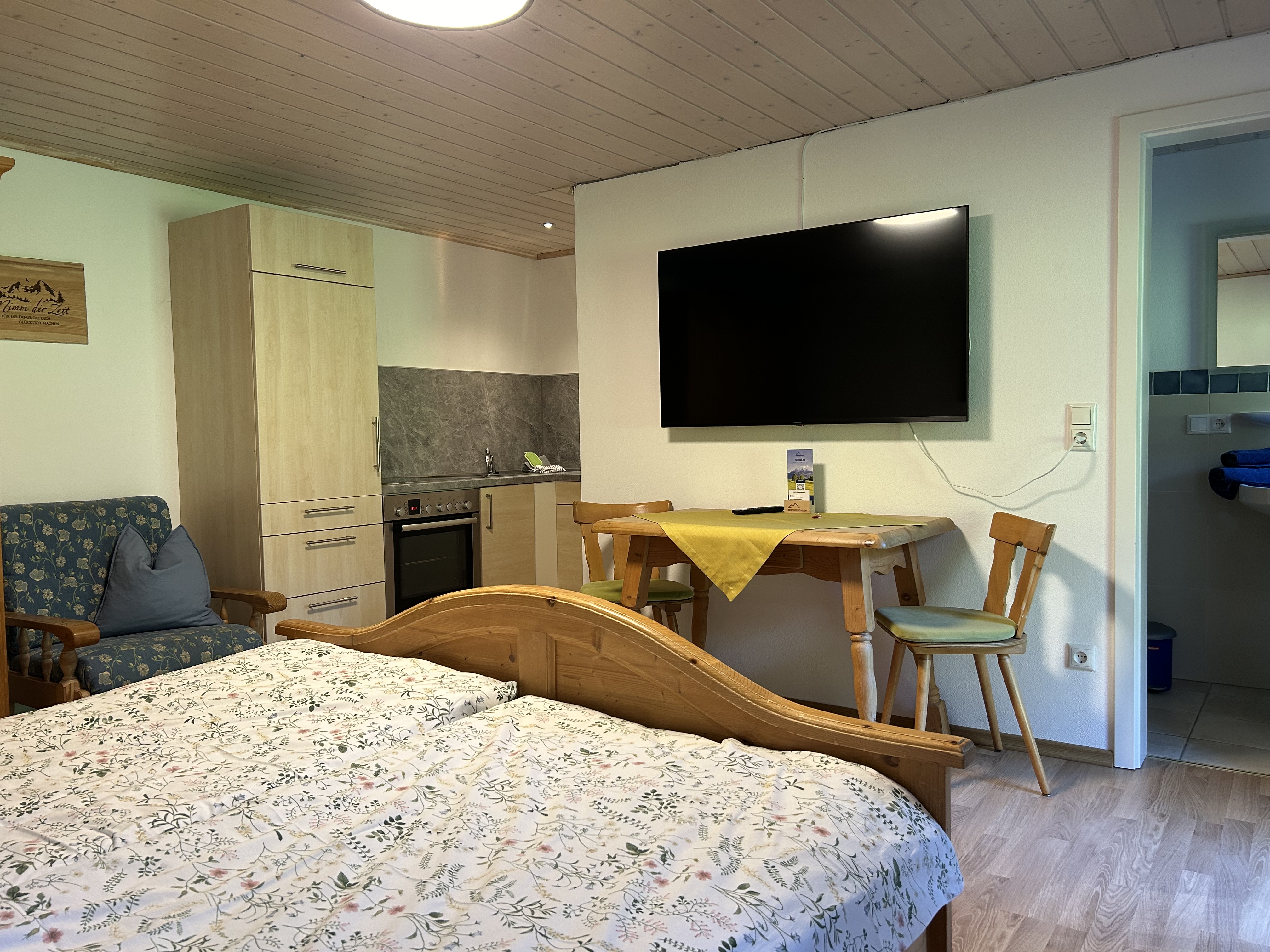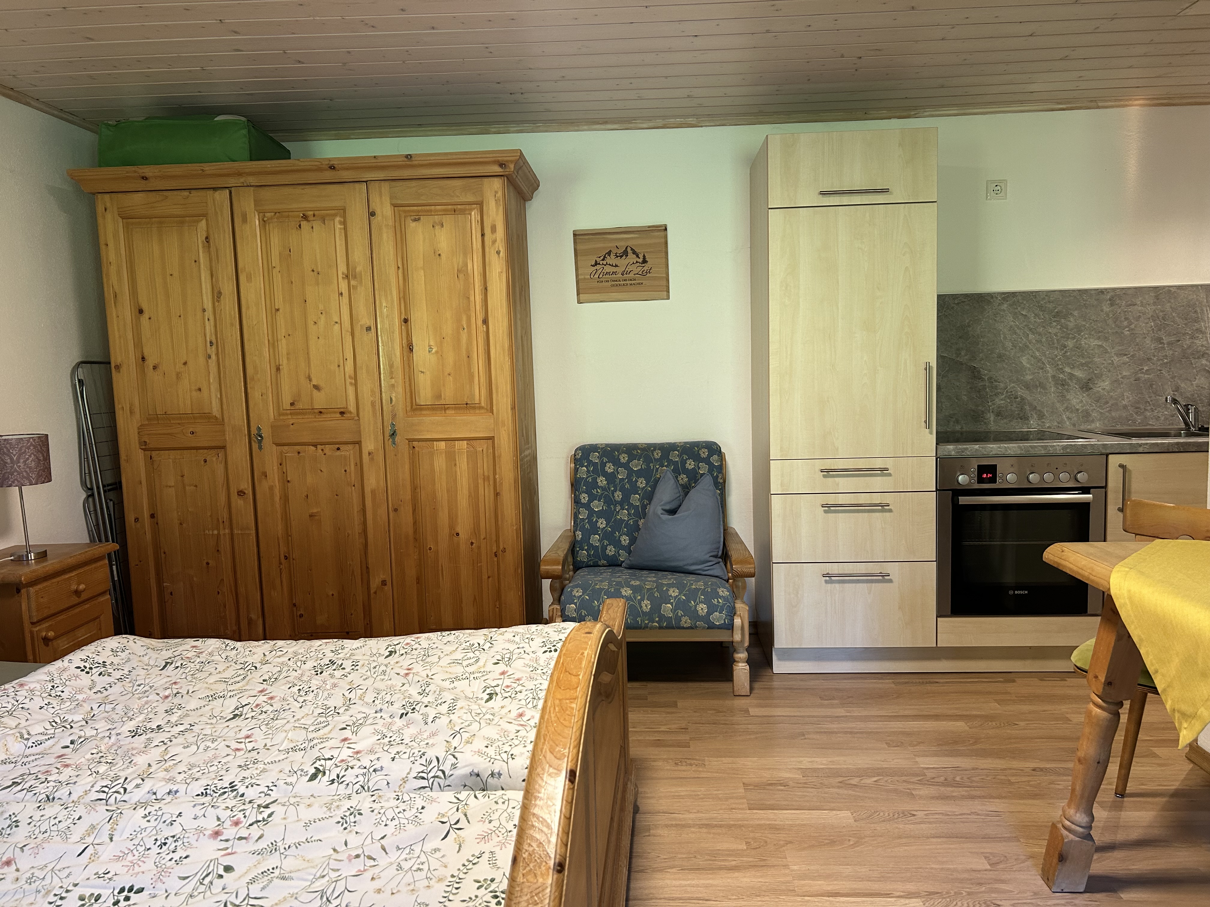 Nichtraucher Ferienwohnung, im Landhausstil eingerichtet, für 2 Erwachsene. Wohnschlafraum mit gut ausgestatteter Kochnische, SAT-TV, Terrasse, eigener Eingang. Auf Anfrage ist ein Zustellbett möglich.