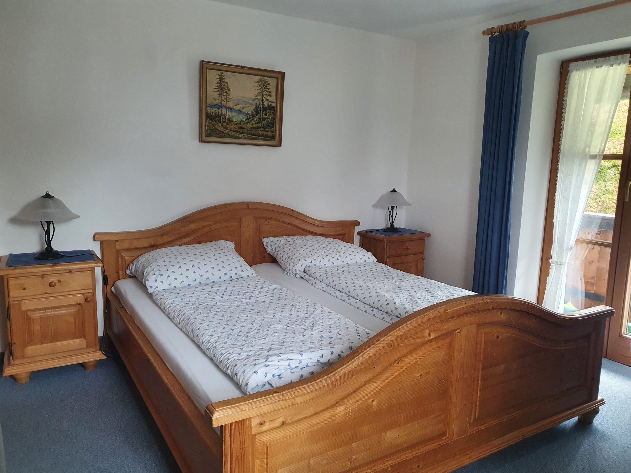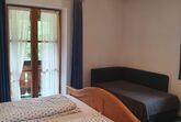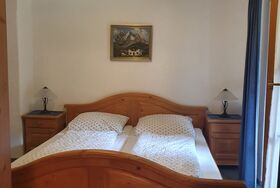 Große, helle Nichtraucher-Ferienwohnung, im Landhausstil eingerichtet.2 separate Schlafräume mit jeweils eigener Dusche und WC; Wohnküche mit komplett eingerichteter Küchenzeile; 2 Südwest-Balkone, Zustellbett auf Anfrage möglich.