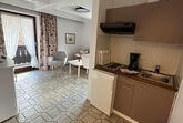 mit ausziehbarer Schlafcouch und Kabel-TV sowie Telefon. Eine gemütliche Essecke bietet genug Platz