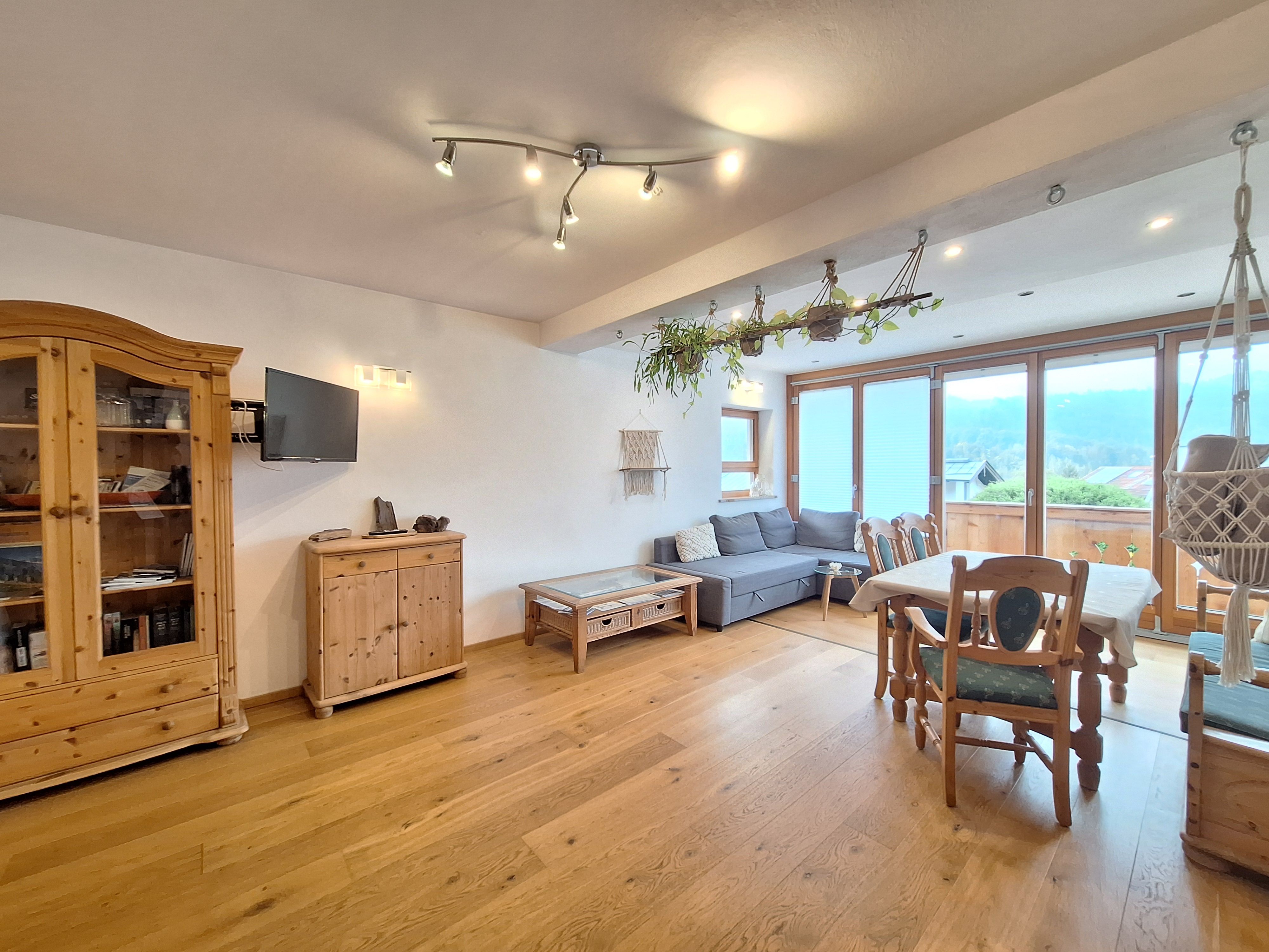 Die Ferienwohnung Untersberg im Haus Sternblick in Bischofswiesen ist geeignet für bis zu 5 Personen. Sie verfügt über ein Schlafzimmer mit Doppelbett(181x210cm) und ein weiteres Schlafzimmer mit Doppelbett und Einzelbett für weitere 3 Personen, ein großes Wohnzimmer mit Zugang zum Balkon, einer Küche und einem Bad mit Badewanne und WC, sowie WLAN. Genießen Sie die Nachmittage und Abende auf Ihrem überdachter Balkon mit Blick auf den Watzmann und das Lattengebirge. Die Ferienwohnung verfügt über einen seperaten Eingang auf der Waldrandseite. Die ruhige Waldrandlage wird zu Ihrem Urlaubsgefühl beitragen.