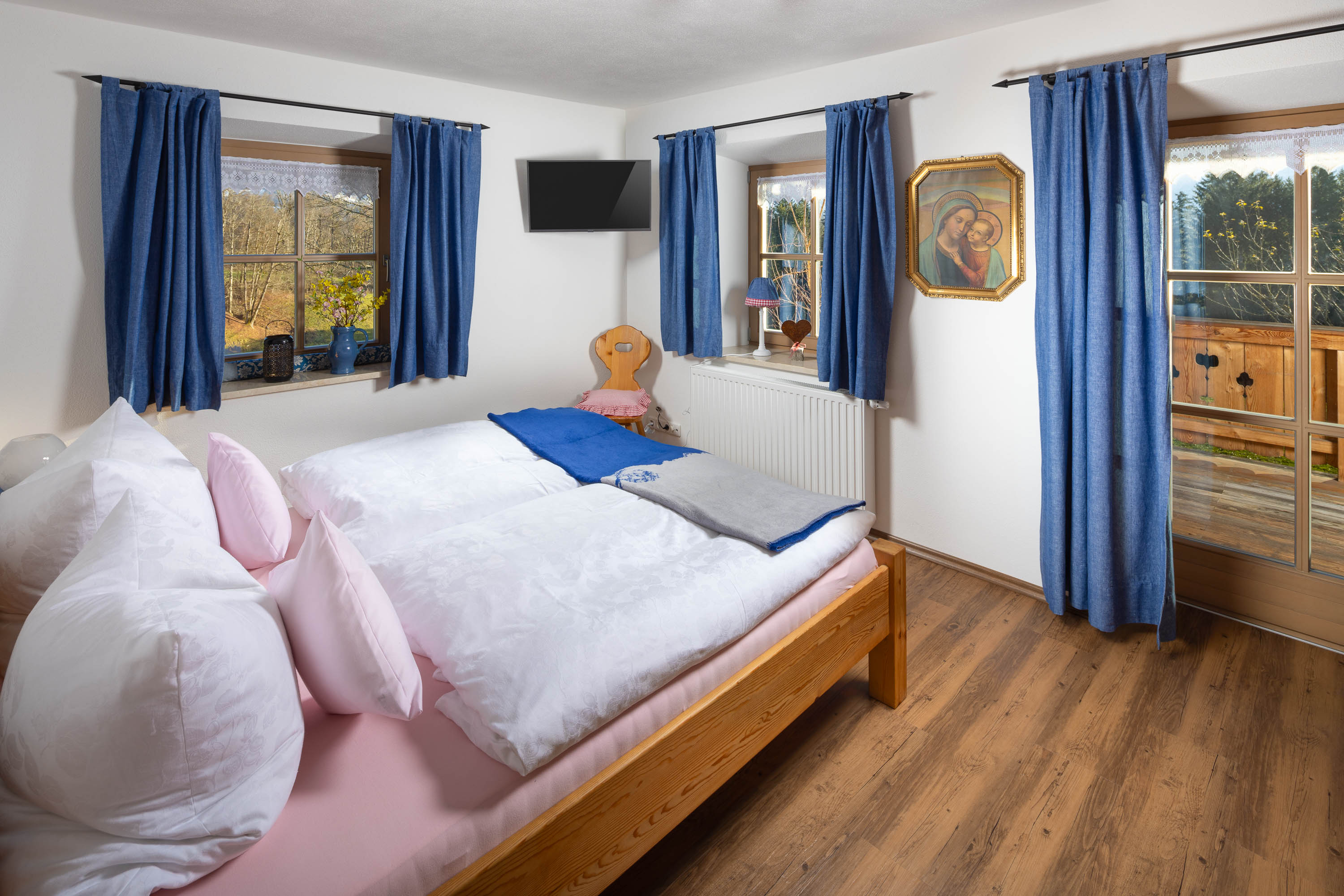 Traumhaftes Panorama mit Blick auf den Watzmann. Das Roßpointlehen befindet sich in Alleinlage inmitten von Wiesen und Feldern, mit traumhaftem Ausblick auf die umliegende Bergwelt des Nationalparks Berchtesgaden.Lassen Sie den Tag mit Ihren Lieben bei einem Gläschen Wein auf dem wunderschönen 10 m² großen Balkon mit unvergesslichem Watzmannblick ausklingen.In unserem Haus steht Ihnen kostenloses WLAN zur Verfügung. Direkt vor unserem Haus befindet sich der Parkplatz und mitgebrachte Fahrräder können sicher untergestellt werden. Lassen Sie Ihr Auto an der Unterkunft stehen und nutzen Sie mit der Gästekarte den kostenlosen Linienbus. Die Bushaltestelle ist nur wenige Meter entfernt. Eine E-Ladestation ist vorhanden.