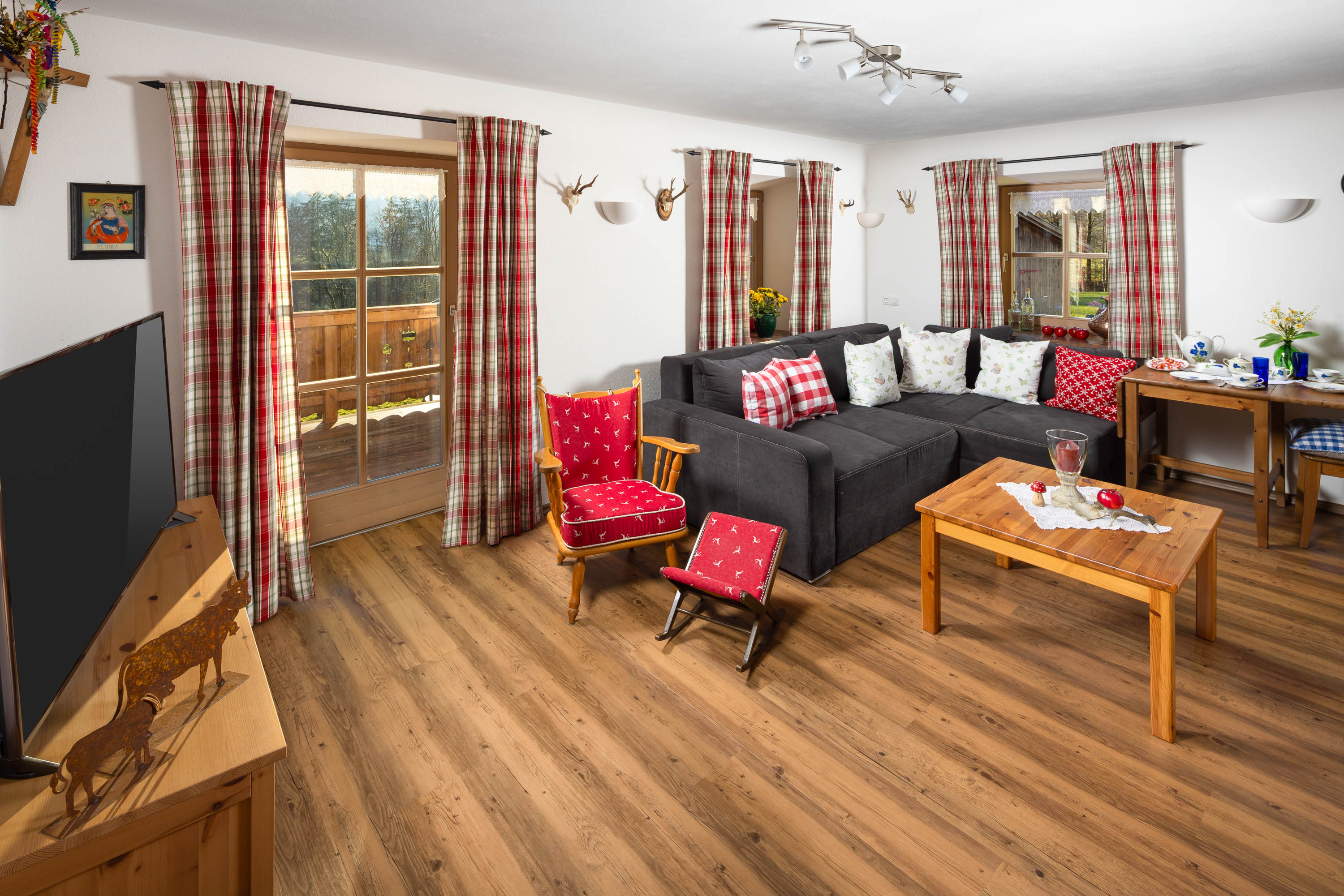 Für Watzmannliebhaber! 45qm große Ferienwohnung im 1. Stock für zwei Personen bietet unvergessliche Urlaubserlebnisse. Die Wohnung verfügt über ein separates Schlafzimmer (mit extra TV), 1 Bad mit begehbarer Regendusche und WC sowie Handtuchtrockner, eine Einbauküche mit angrenzendem Wohn-Esszimmer, mit großem überdachtem Balkon mit wundervollem Watzmannblick (Abendsonne).