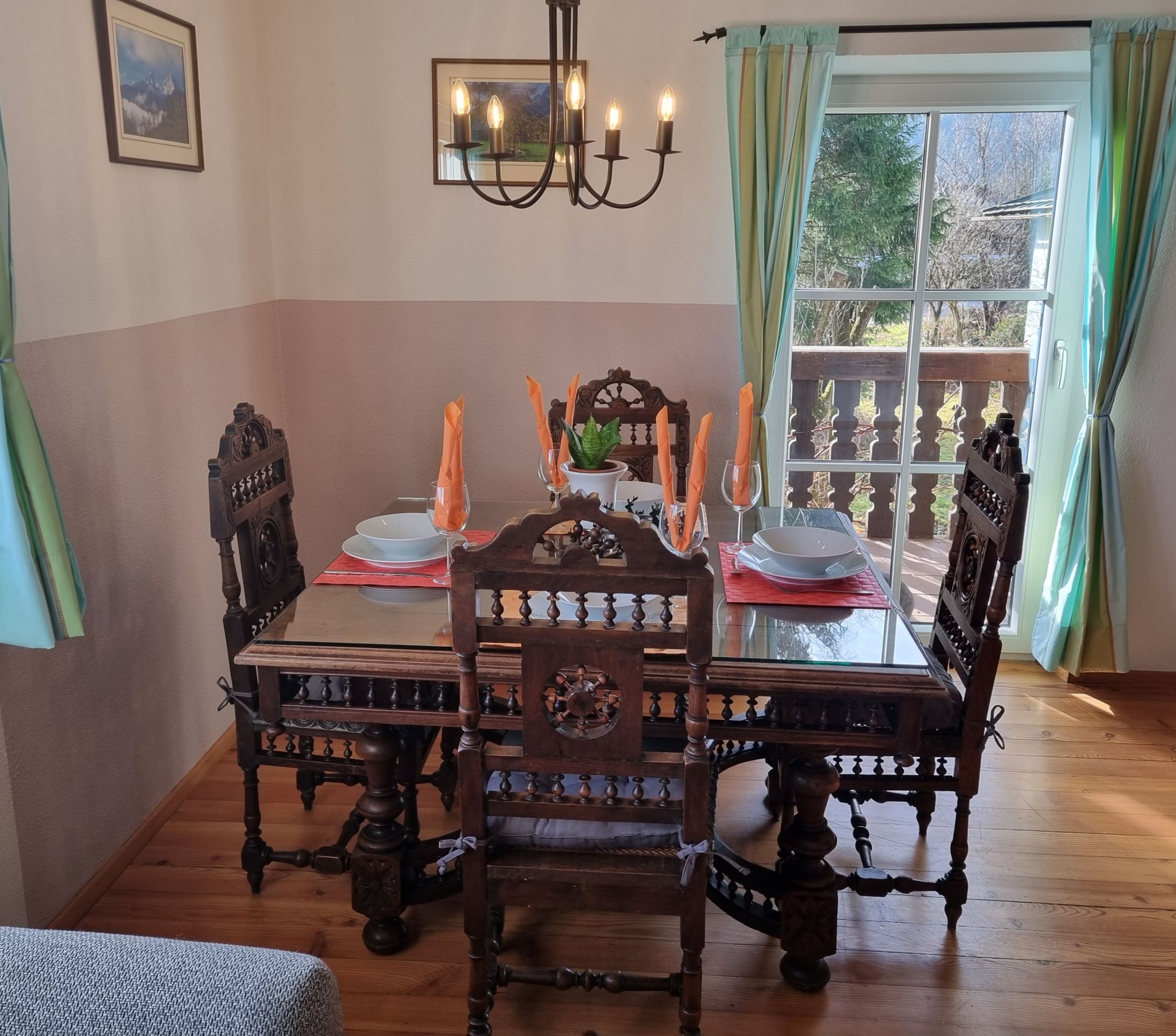 Die ruhig gelegene Nichtraucher-Ferienwohnung mit herrlichem Berg- und Gartenblick und Blick auf Sehenswürdigkeiten für 2-4 Personen (plus Baby) bietet Platz auf 75 qm liegt separat im 1. Stock. Sie ist über eine Treppe erreichbar. Zimmer: großes Wohnzimmer mit voll ausgestatteter Küchenzeile (inkl. Kaffee-Pad-Maschine, 2 E-Herdplatten, Kühlschrank mit Eisfach, Mikrowelle, Toaster- Pürierstab und Wasserkocher) Esstisch, großes Sofa und Kamin. Zugang zum Balkon, Schlafzimmer im original Voglauer Stil mit Doppelbett (Kingsize 200x200cm, Testsieger Matratzen mit wahlweise weicher oder mittelharter Seite) 2 Schränken, weiteres kleines Schlafzimmer mit 2 Einzelbetten (100x200cm, Testsieger Matratzen) neues Badezimmer mit Dusche und WC, Balkon 25 Meter Länge in 3 Himmelsrichtungen mit Tischgarnitur und 2 Liegestühlen, Sonnenschirm, zusätzliche Sitzbank, Stellplatz für Auto direkt am Haus, überdachter Stellplatz für 2 Fahrräder, kostenloses W-LAN, Feuerholz für Kamin zum Erwerb, Kinderbett, Kinderstuhl, Kinderspielzeug und Spiele stehen kostenfrei zur Verfügung, besonderer Service für Familien mit Babys und Kleinkinder - wenn möglich ist eine frühere Anreise und spätere Abreise kostenfrei möglich, zur unabhängigen Anreise steht auch ein Schlüsselsafe zur Verfügung, Nichtraucherferienwohnung (Rauchen am Balkon erlaubt, Aschenbecher steht bereit) keine Haustiere erlaubt. Barzahlung bei Anreise ist neben Überweisung ebenfalls möglich.