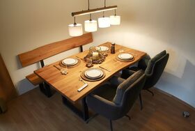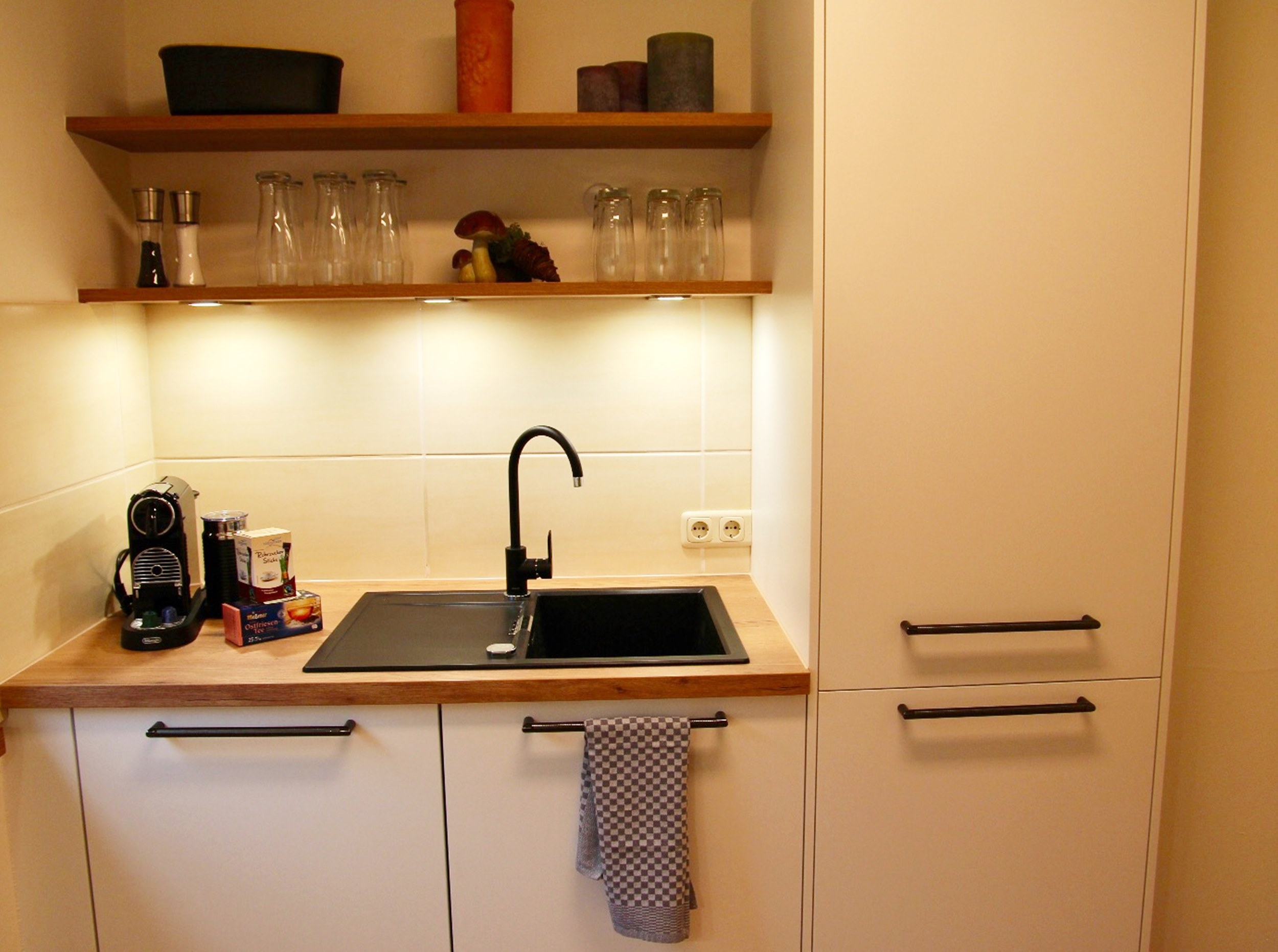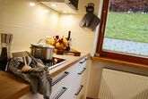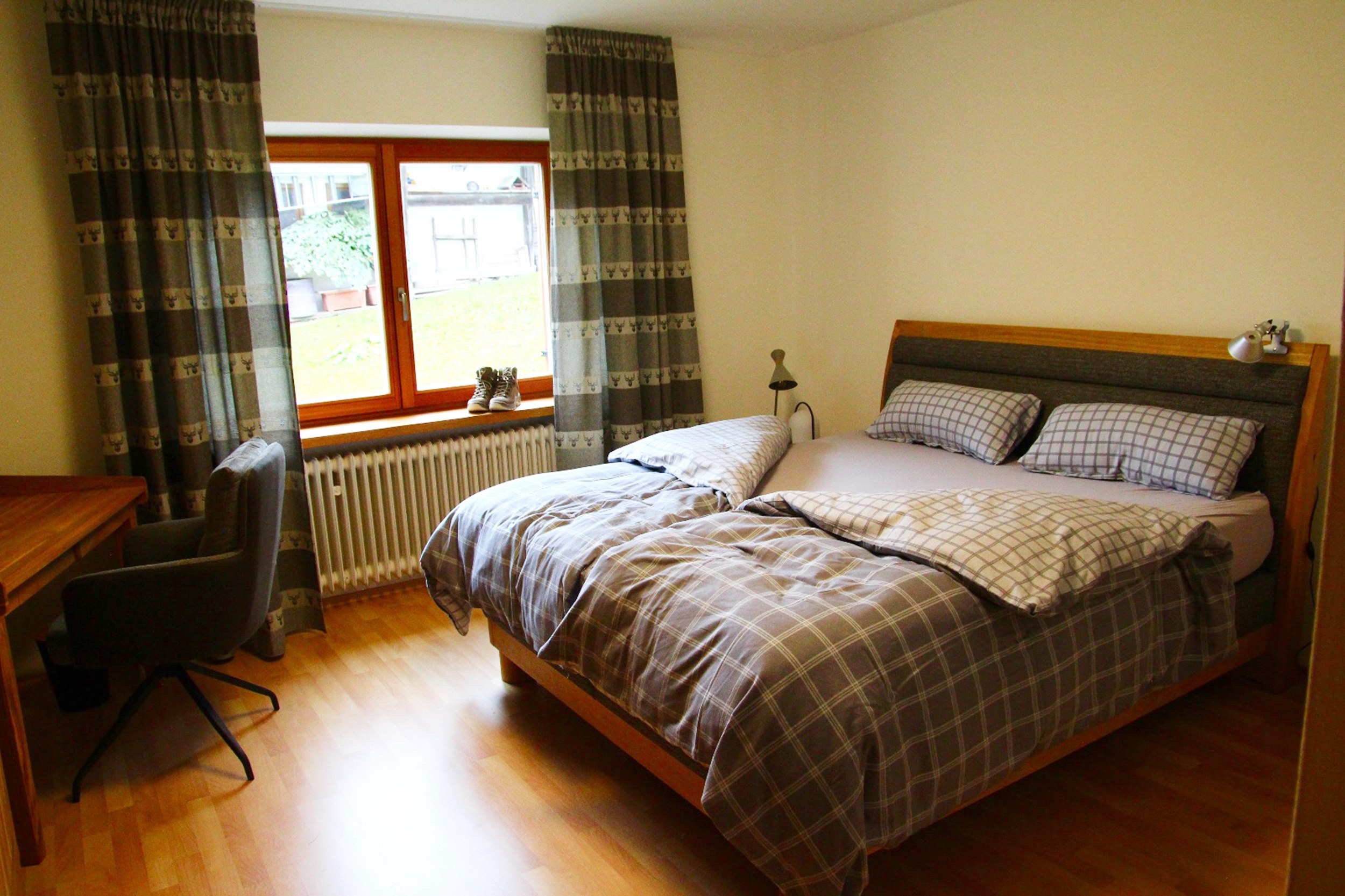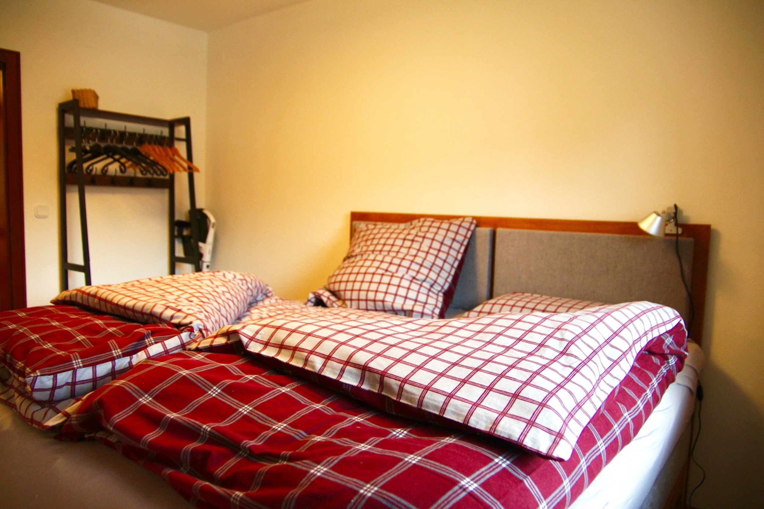 Die Ferienwohnung liegt im Erdgeschoß eines Zweifamilienhauses. Sie besteht aus drei Zimmern, Küche, Bad und einer Terrasse mit Gartenbenutzung. Ihnen stehen zwei Schlafzimmer mit je einem Boxspring Doppelbett zur Verfügung. Das größere Schlafzimmer ist zusätzlich mit einem Schreibtisch ausgestattet. Im Wohn/Esszimmer steht Ihnen eine Sitzgruppe für gemütliche Abende zur Verfügung. Ein Fernseher rundet das Angebot ab. Eine Essecke bietet Ihnen Platz für ein gemütliches Frühstück oder Essen. Die Küche ist voll ausgestattet. Auch an Kochgeschirr und Elektrokleingeräte ist gedacht. Bad und Toilette sind getrennt. Im Badezimmer befindet sich eine Badewanne mit Glasabtrennung, falls Sie lieber duschen. Ein großer Spiegelschrank bietet genügend Stauraum. Bettwäsche und Handtücher werden gestellt.
