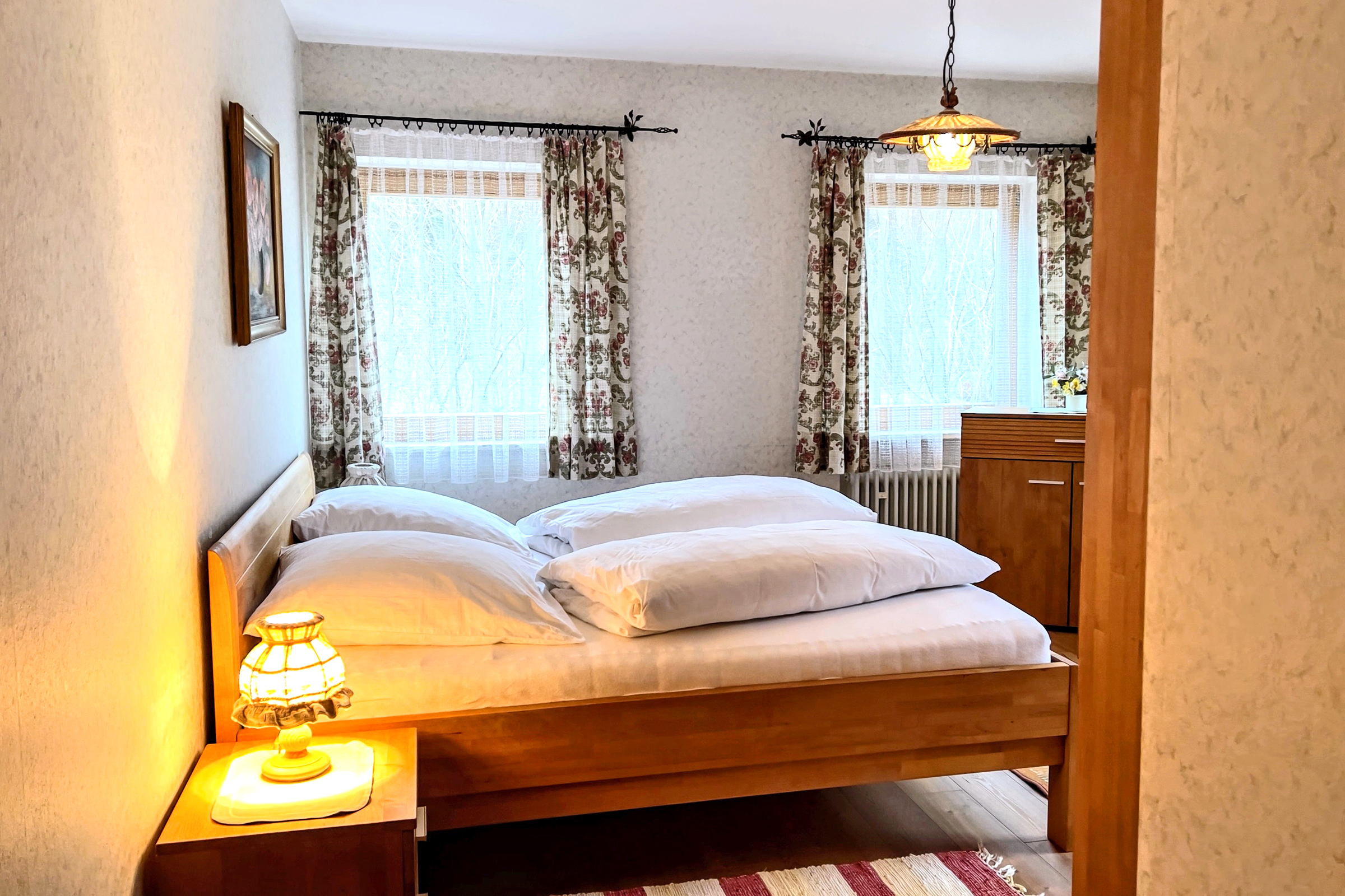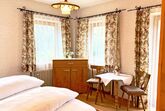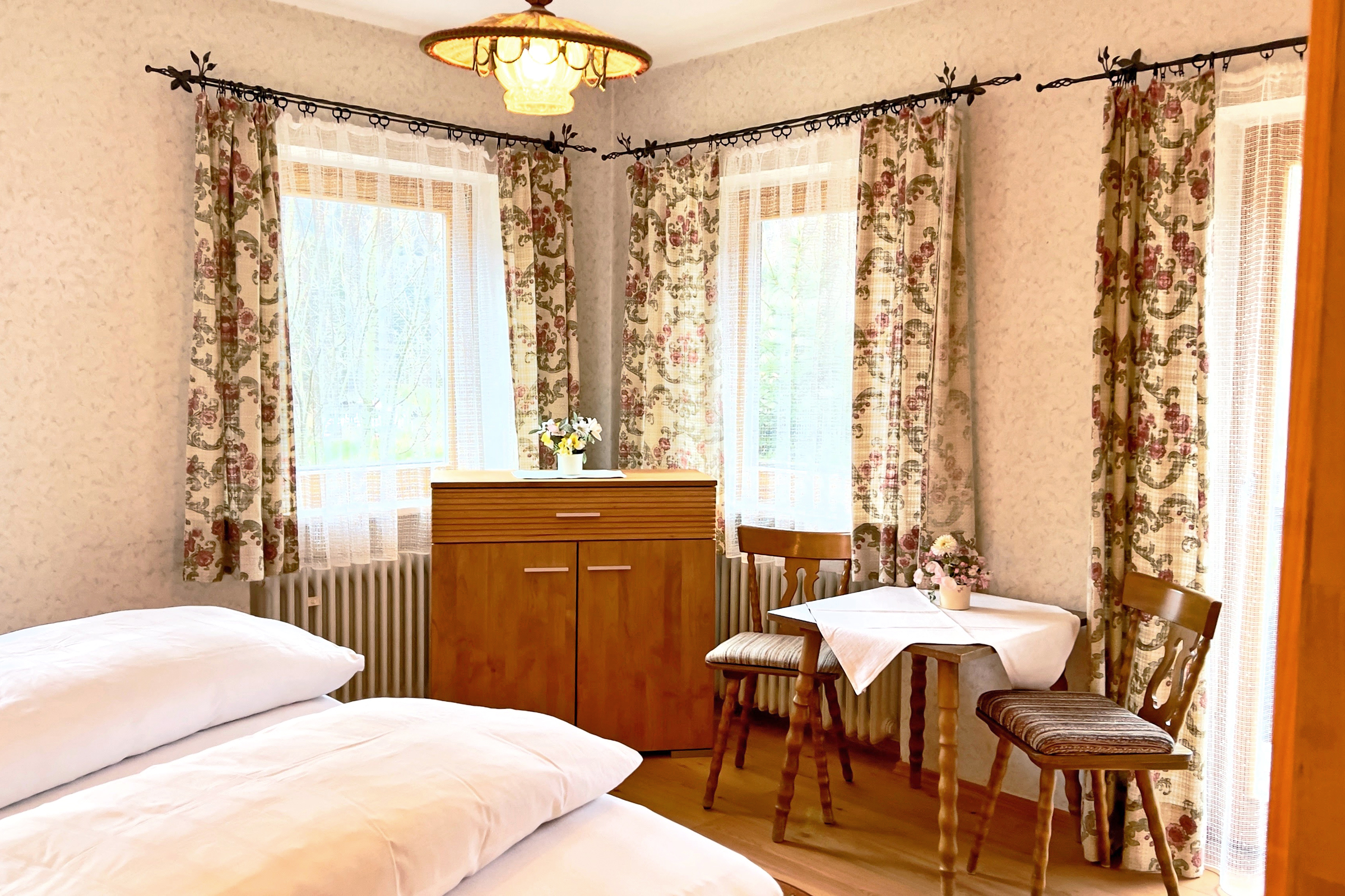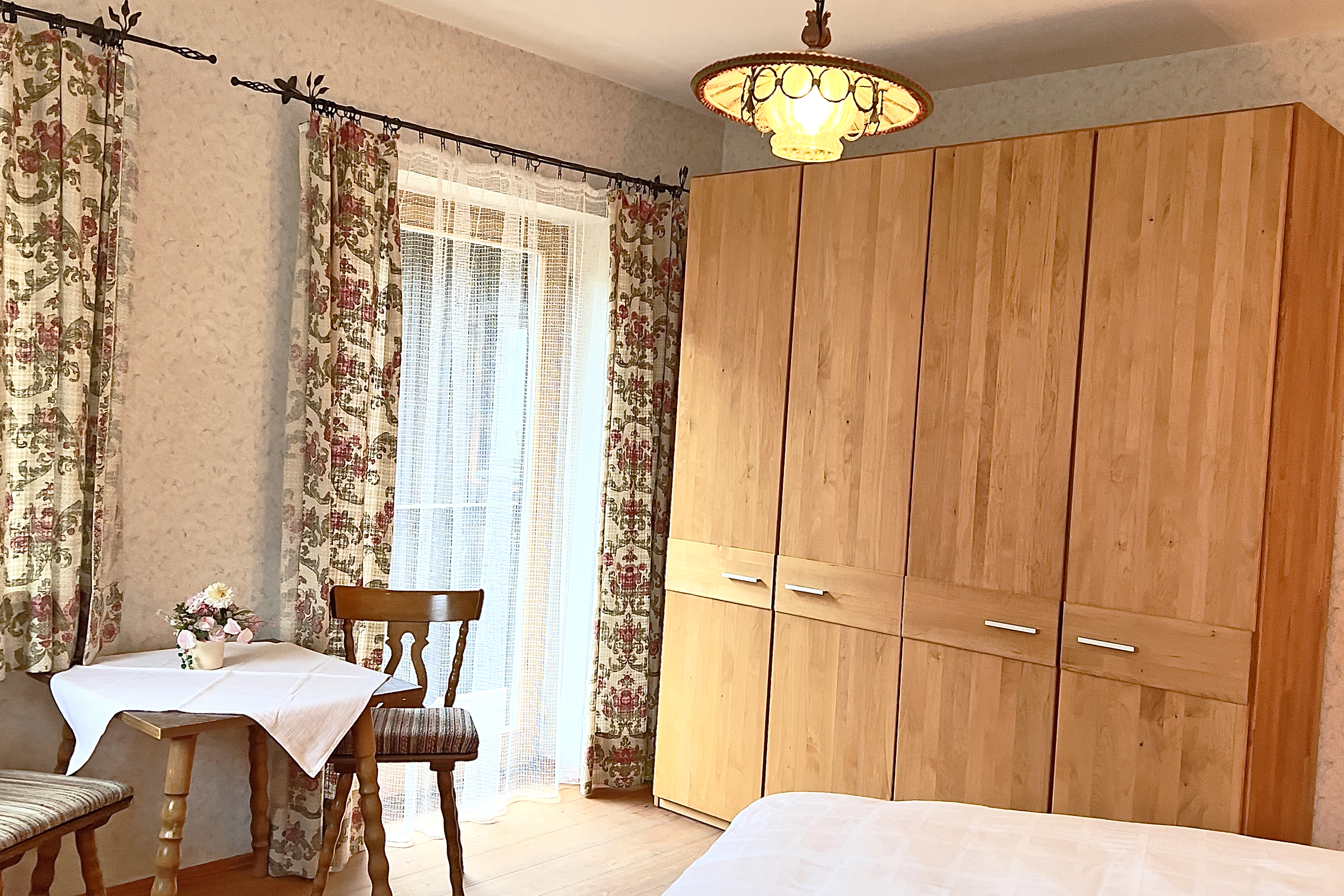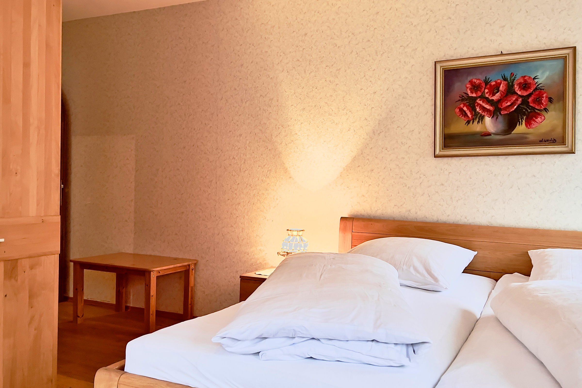 Großes helles Doppelzimmer mit Dusche/WC, Föhn, TV, kostenloses WLAN und Balkon. Herrlicher Blick vom Balkon auf das Zellerhorn und die umliegenden Berge. Ein Hund darf gegen Aufpreis gerne mitgebracht werden. Ihr Frühstück genießen Sie im Frühstücksraum.