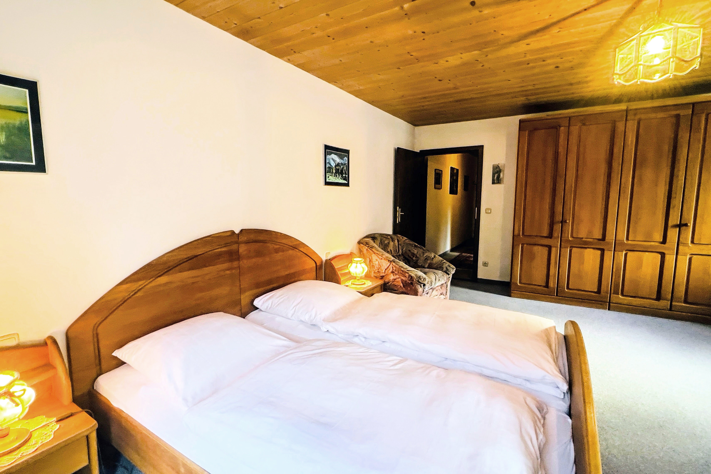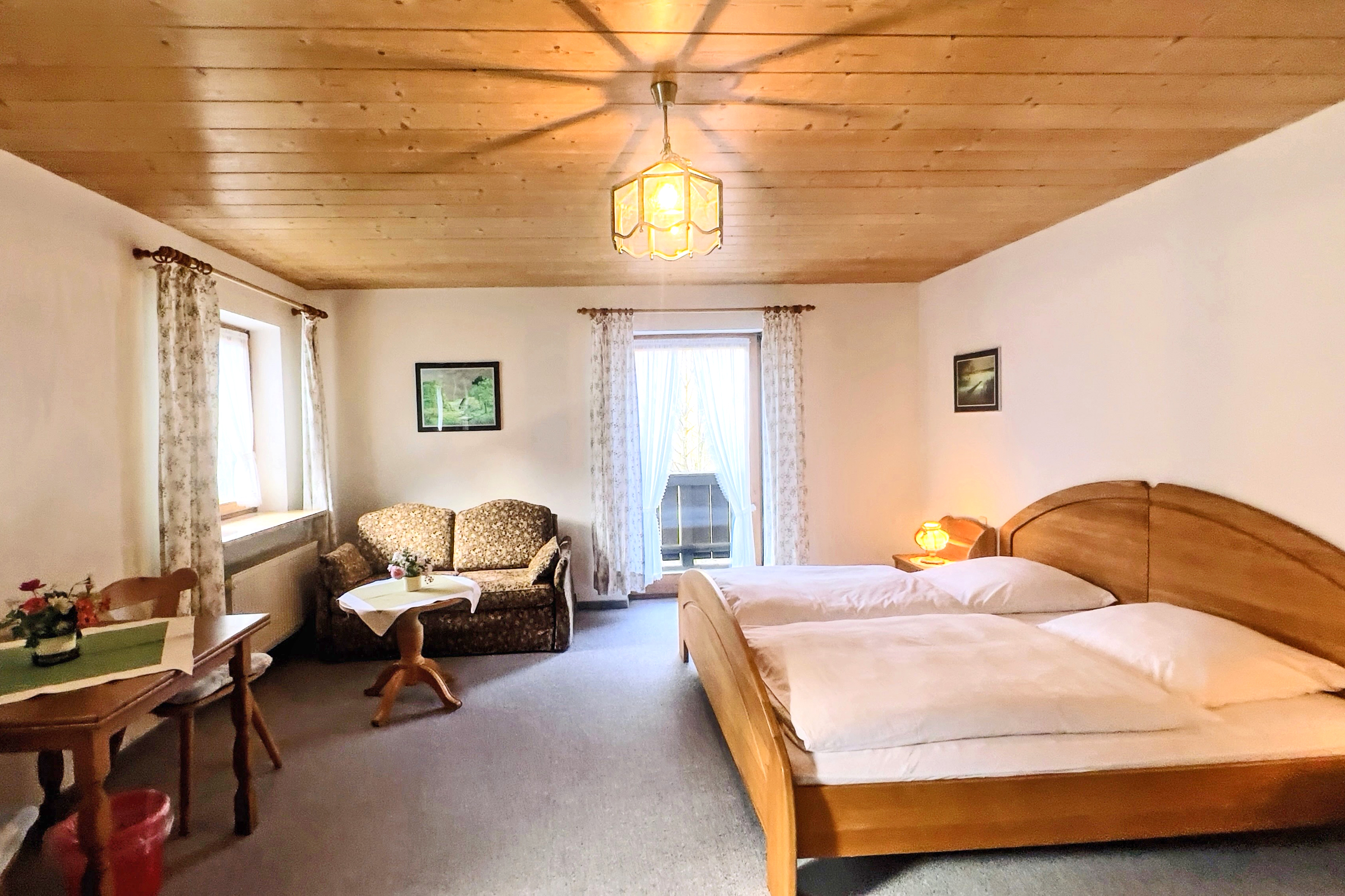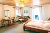 Großes helles Doppelzimmer mit Dusche/WC, Föhn, TV und Balkon. Herrlicher Blick vom Balkon auf das Zellerhorn und die umliegenden Berge. Kostenloses WLAN, ein Hund darf gegen Aufpreis gerne mitgebracht werden. Ihr Frühstück genießen Sie im Frühstücksraum.