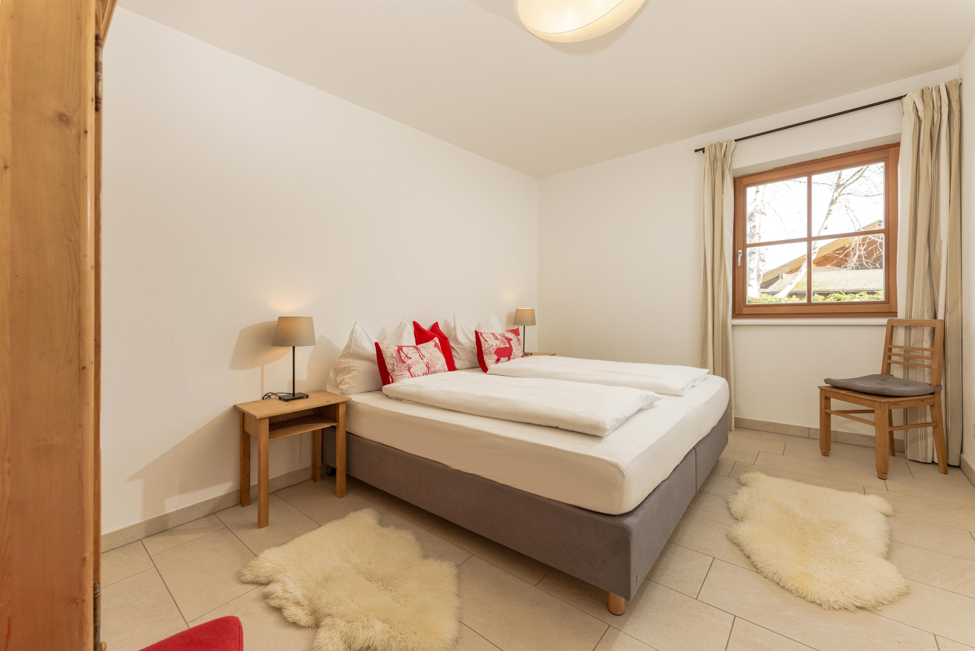 - 1 Schlafzimmer mit Doppelbett + Badezimmer (Dusche, WC)