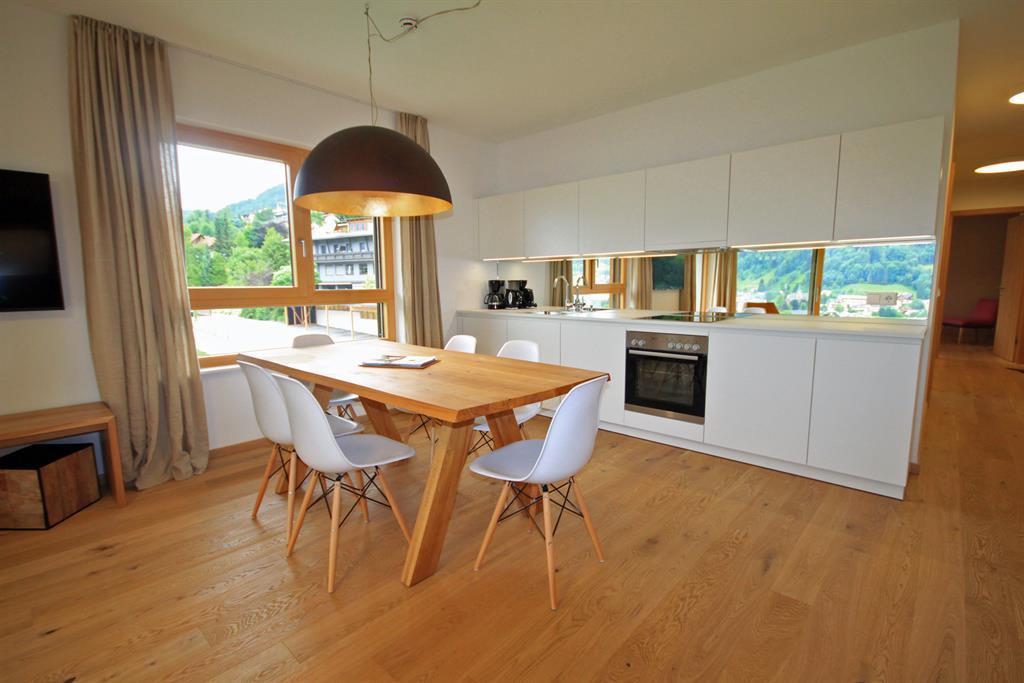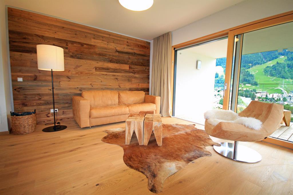 3 miteinander verbunden Häuser 38 servicierte Appartements, von 40m² Studios, Appartements mit einem, zwei oder drei Schlafzimmern bis hin zu 130m² Penthäusern, herrlichen Ausblick und Top Ausstattung inklusive! Die hochwertige Grundausstattung der Appartements mit heimischen Materialen wie Holz, Stein und Glas vermitteln ein modernes Wohlfühlambiente mit viel Licht und Aussicht, - eine Symbiose aus purem Lebensgefühl und Kraftplatz an der Sonne. Komplett ausgestattete Designküchen, großzügige Wohnräume zum Teil mit offenem Kamin, moderne & stylische Möbel, kostenfreies WLAN, Kabel TV in allen Schlaf- und Wohnräumen sowie moderne und lichtdurchflutete Badezimmer, lassen für den Gast, der seine private Freiheit schätzt, keine Wünsche offen .