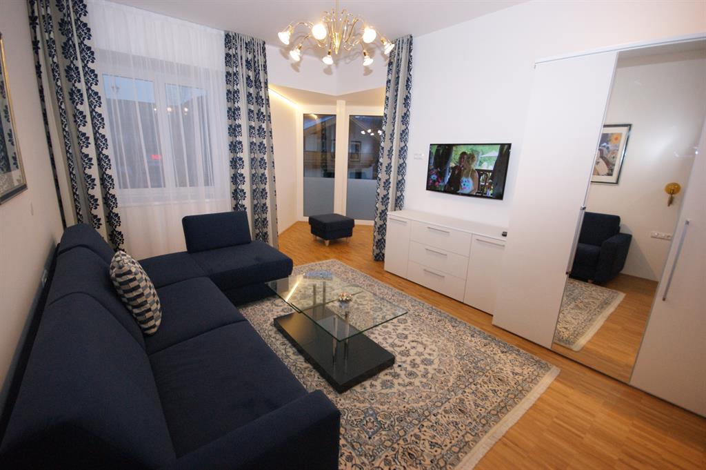 Luxus-Appartement (89 m2) für 2-6 Pers. mit 2 Schlafzimmern eines davon als én suite mit Sanitäreinheit, 1 Wohnschlafzimmer, extra Dusche/WC, Loggia, große Küche mit Mikrowelle, Spülmaschine, Backofen, Kochinsel mit Induktionskochfeld, Kabel-TV, gratis WLAN, Hotelsafe, Telefon, barrierefrei, Lift