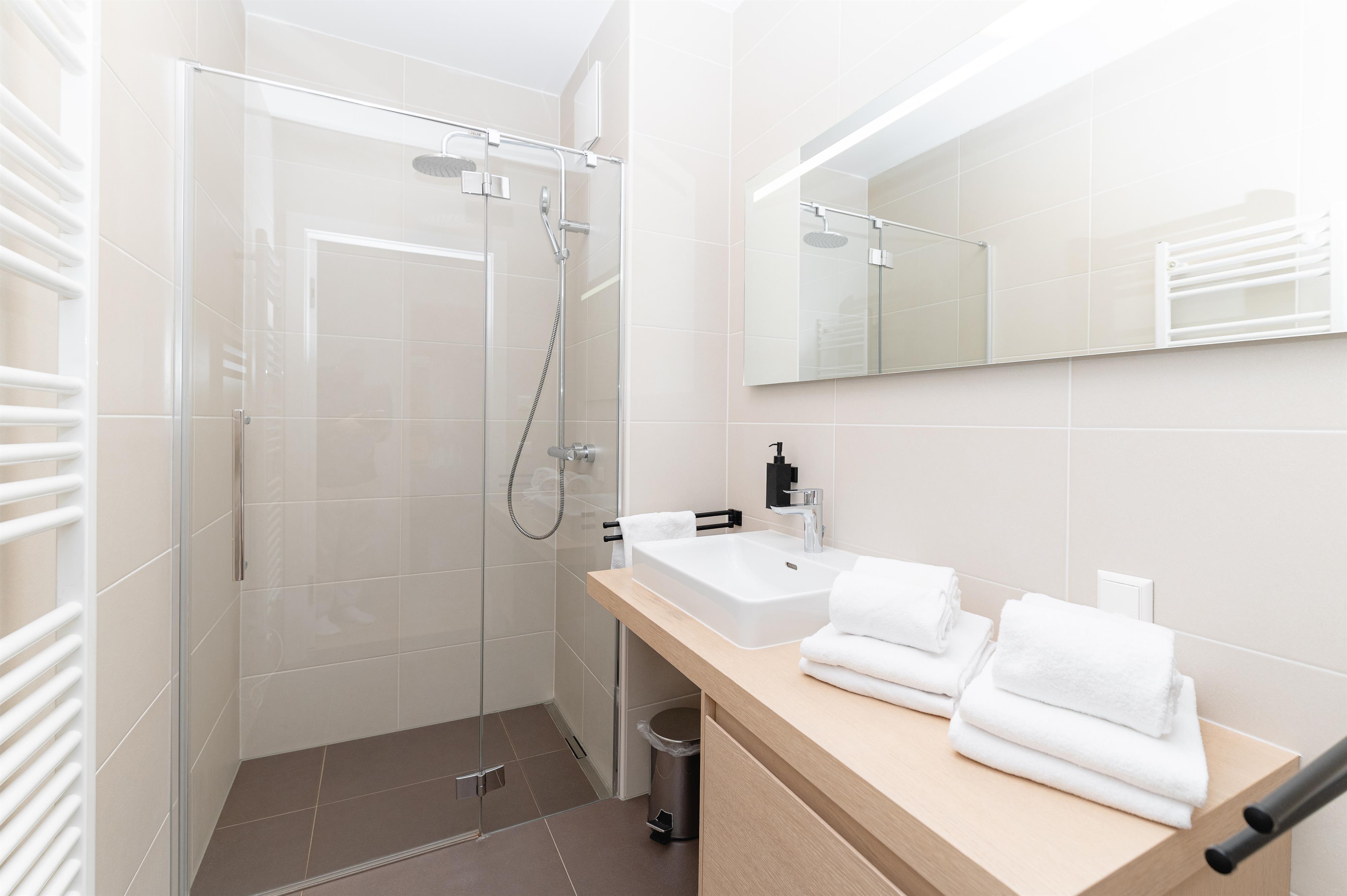 3 miteinander verbunden Häuser 38 servicierte Appartements, von 40m² Studios, Appartements mit einem, zwei oder drei Schlafzimmern bis hin zu 130m² Penthäusern, herrlichen Ausblick und Top Ausstattung inklusive! Die hochwertige Grundausstattung der Appartements mit heimischen Materialen wie Holz, Stein und Glas vermitteln ein modernes Wohlfühlambiente mit viel Licht und Aussicht, - eine Symbiose aus purem Lebensgefühl und Kraftplatz an der Sonne. Komplett ausgestattete Designküchen, großzügige Wohnräume zum Teil mit offenem Kamin, moderne & stylische Möbel, kostenfreies WLAN, Kabel TV in allen Schlaf- und Wohnräumen sowie moderne und lichtdurchflutete Badezimmer, lassen für den Gast, der seine private Freiheit schätzt, keine Wünsche offen .