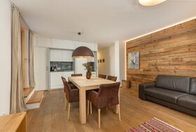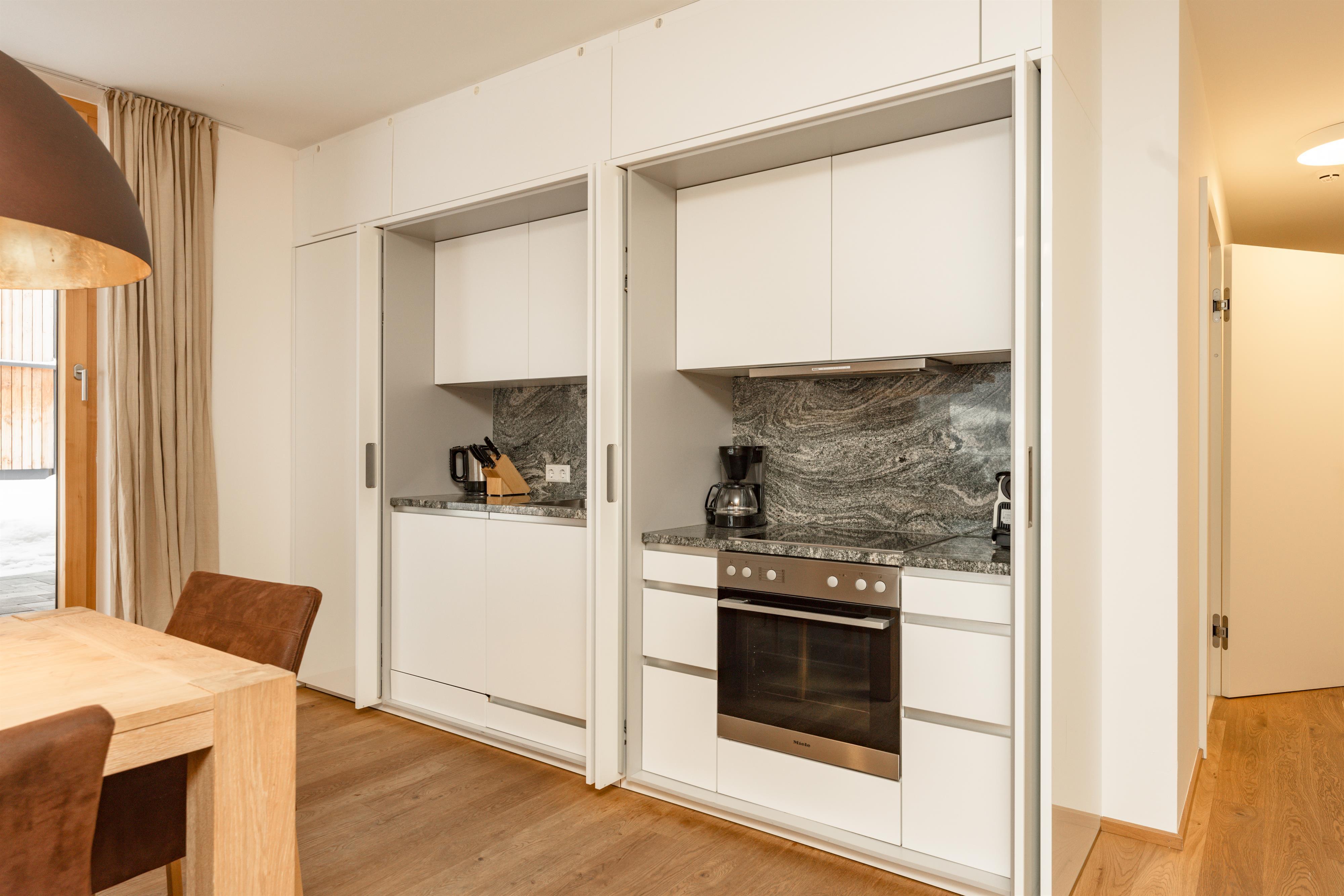 3 miteinander verbunden Häuser 38 servicierte Appartements, von 40m² Studios, Appartements mit einem, zwei oder drei Schlafzimmern bis hin zu 130m² Penthäusern, herrlichen Ausblick und Top Ausstattung inklusive! Die hochwertige Grundausstattung der Appartements mit heimischen Materialen wie Holz, Stein und Glas vermitteln ein modernes Wohlfühlambiente mit viel Licht und Aussicht, - eine Symbiose aus purem Lebensgefühl und Kraftplatz an der Sonne. Komplett ausgestattete Designküchen, großzügige Wohnräume zum Teil mit offenem Kamin, moderne & stylische Möbel, kostenfreies WLAN, Kabel TV in allen Schlaf- und Wohnräumen sowie moderne und lichtdurchflutete Badezimmer, lassen für den Gast, der seine private Freiheit schätzt, keine Wünsche offen .