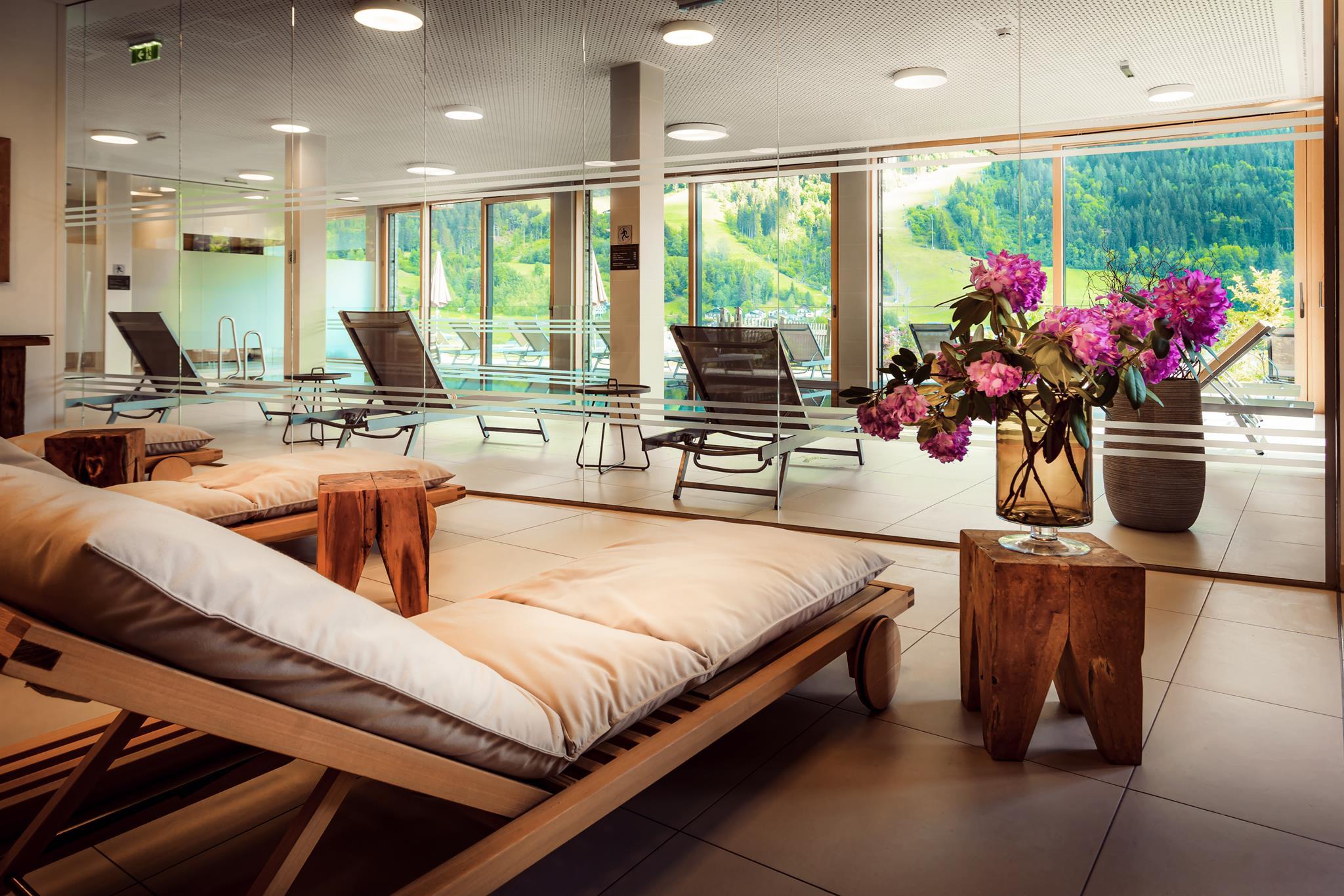 Ein absolutes Highlight der SUN LODGE ist der Wellnessbereich. In einer atemberaubenden Aussichtslage lädt das Spa an 365 Tagen im Jahr zum Schwimmen und Energietanken ein. Genießen Sie einen 360 Grad Weitblick über das Ennstal mit Blick auf Schladming und die Schladminger Hausberge Planai und Hochwurzen. Ein Edelstahl Indoor-Pool, eine finnische Sauna, ein Dampfbad, eine Kaminlounge, individuelle Ruhebereiche, Tees und Schladming Gebirgswasser, Behandlungsräume für Massagen und Beauty und Umkleidekabinen laden im Inneren zum Entspannen ein.