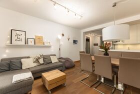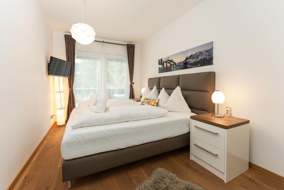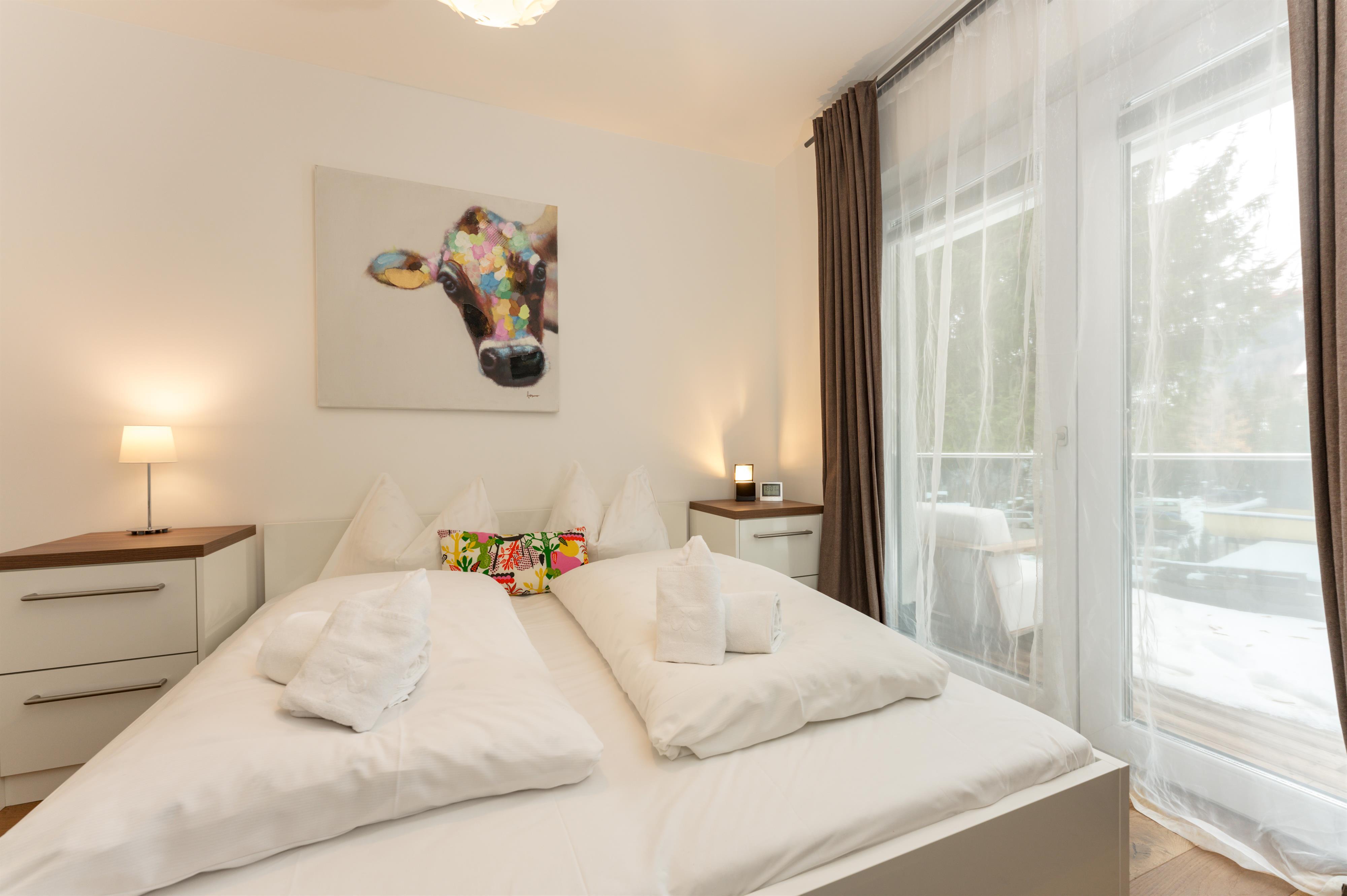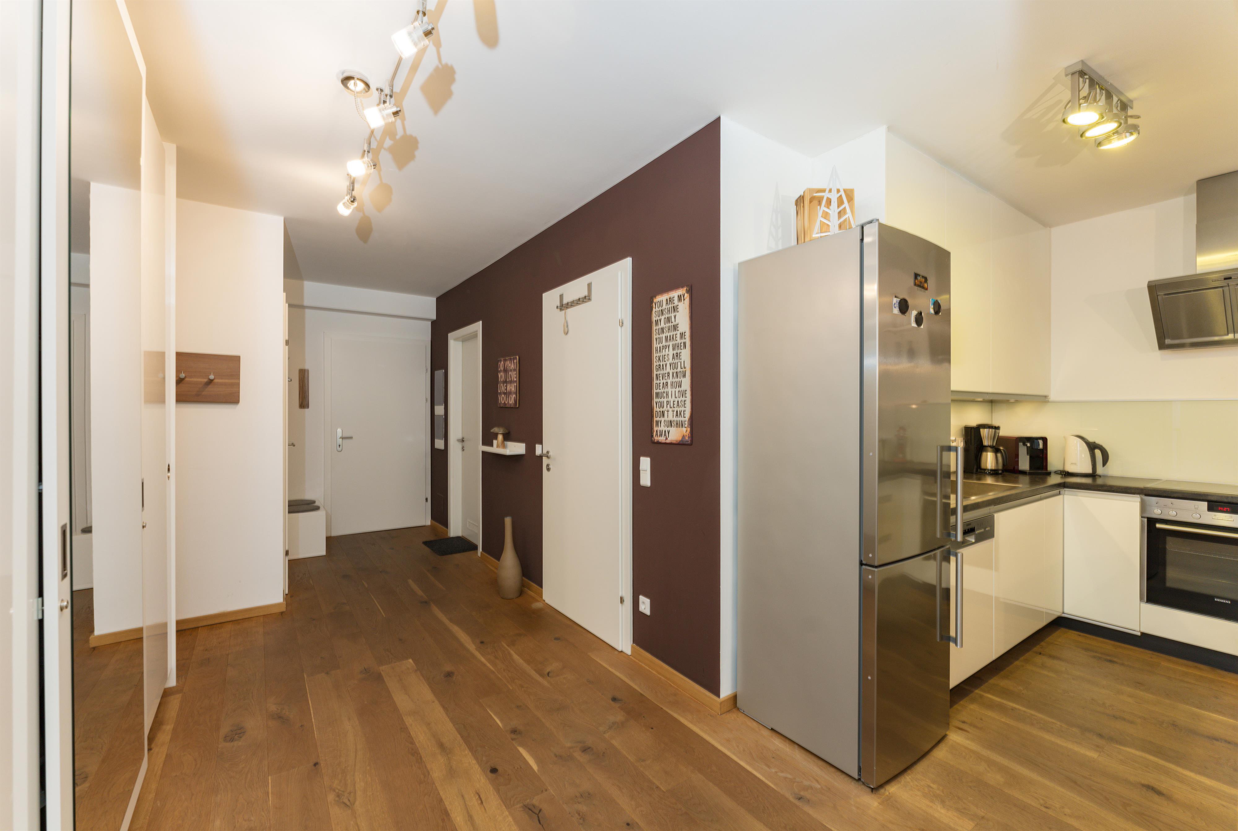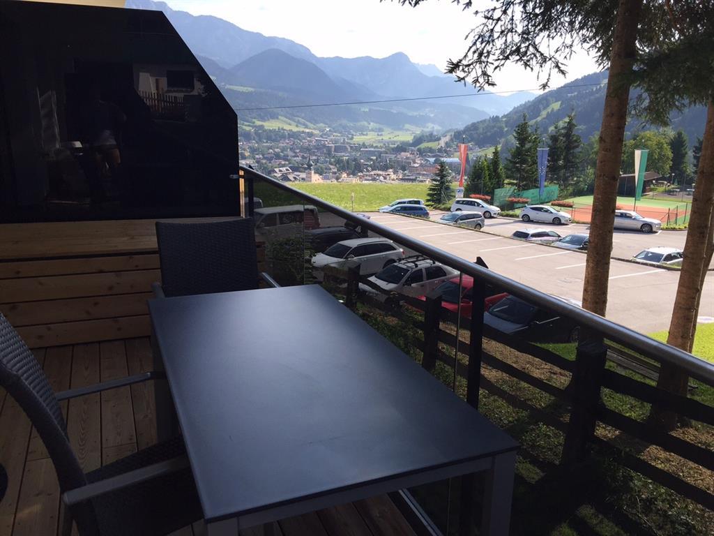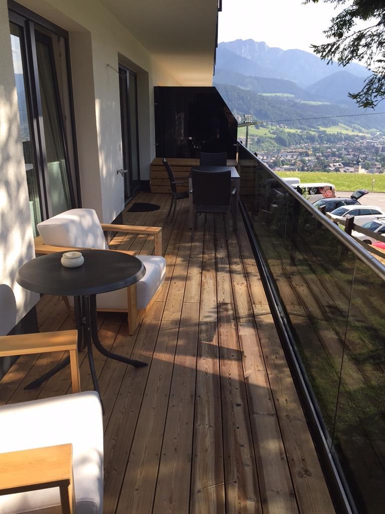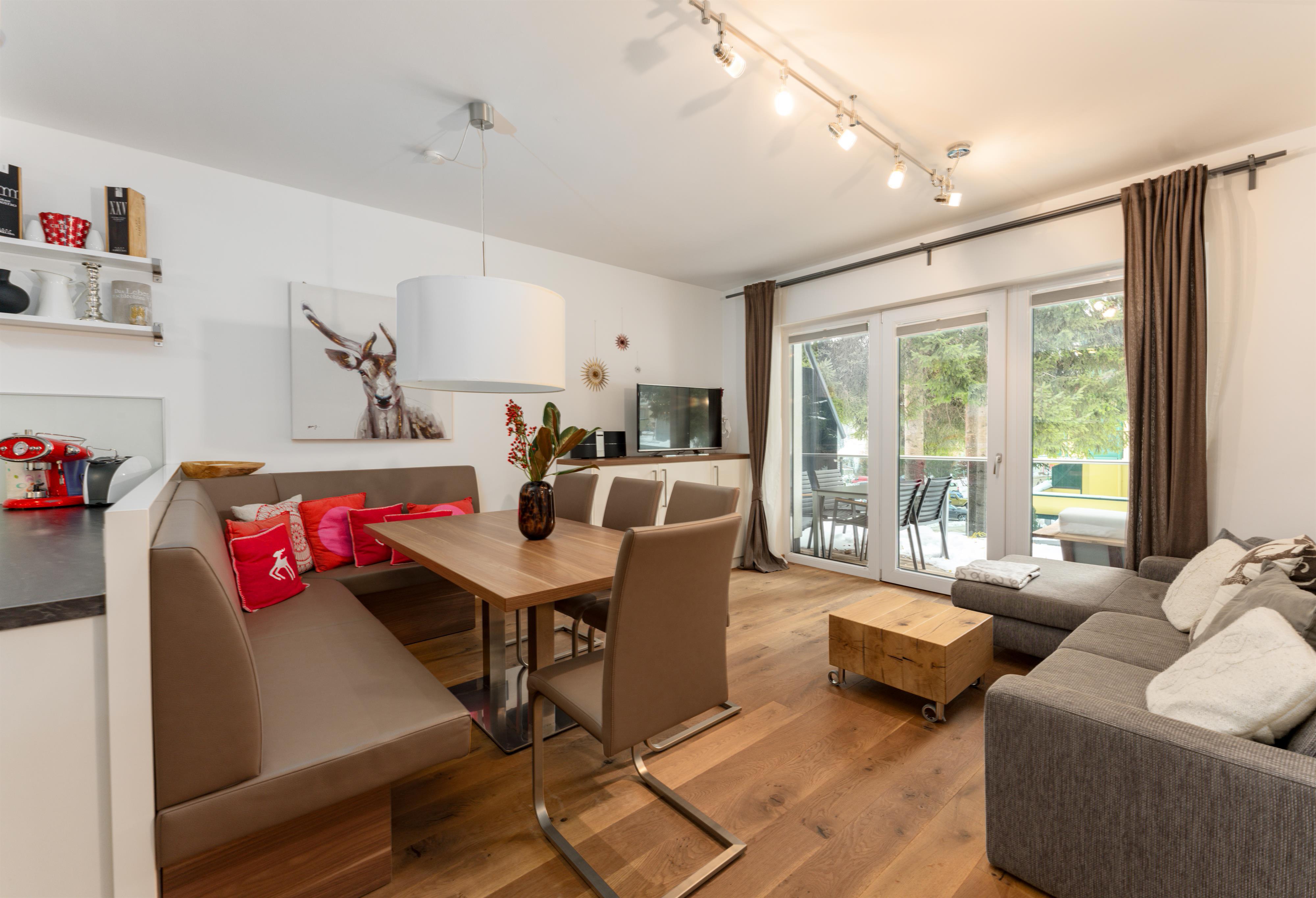 Die 3-Zimmerwohnung, die auf 4 Personen ausgerichtet ist, befindet sich in Rohrmoos im 1. Obergeschoss des 2014 erbauten Appartementhauses, mit Ausblick auf die malerische Stadt Schladming und den nahegelegenen Dachstein. Die Wohnfläche von 80qm verteilt sich auf einen großzügigen Koch-Wohn-Essbereich, 2 separate Schlafzimmer, ein Badezimmer und ein separates WC. Der großzügige Balkon erstreckt sich über die gesamte Breite der Wohnung und ist für die Sommermonate mit Outdoor-Möbeln ausgestattet.
