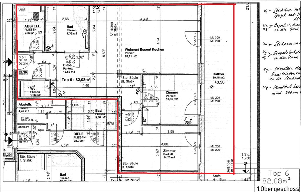 Für 2 – 4 Personen, 82m² Wohnfläche, 1.OG