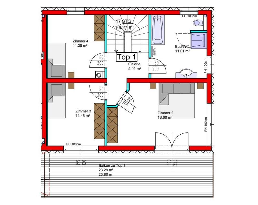 - 2 Bäder eines mit Dusche und WC sowie eines mit Badewanne und WC