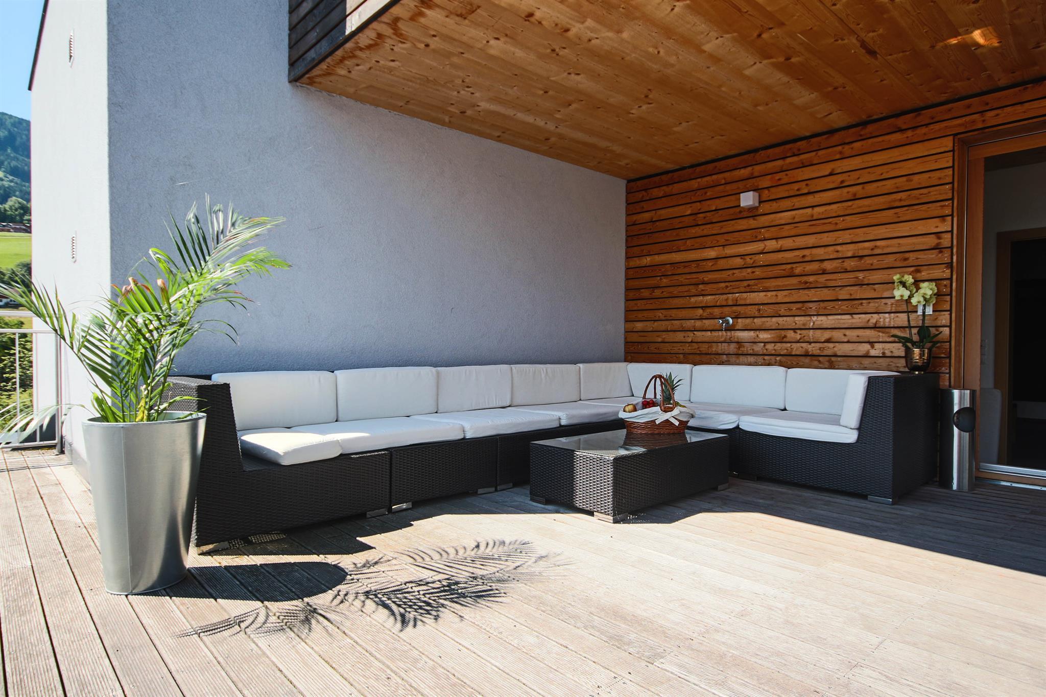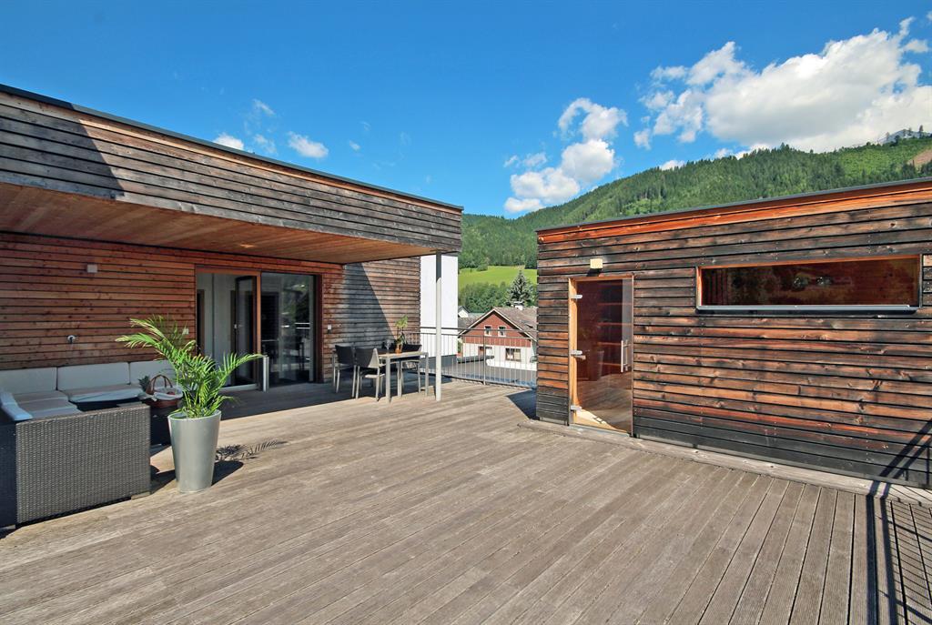 WALULISO - Wasser, Luft, Licht und Sonne - vier Energiequellen, die den Aufenthalt in den Appartements Waluliso bestimmen und aus denen Sie im Urlaub neue Kraft schöpfen können. Der Bauherr - ein Experte in Sachen alternativer Energie - hat den Trend der Zeit erkannt und Einrichtung, Funktionalität und Wohnkomfort nach neuesten Energiequellen ausgerichtet. Die Energie der Sonne und des Lichts werden durch eine riesige Photovoltaikanlage in Strom umgewandelt, mit der auch die Panoramasauna mit faszinierendem Blick auf den Planaizielhang betrieben wird. Natürliche Materialen wie Holz und Stein finden sich hier nicht nur bei der exklusiven Innenausstattung aus hochwertigen Materialen in reduziertem modernem Design sondern auch in vielen Details. Große Panoramafenster in den Appartements geben den Blick auf die Hochwurzen und die Plani frei und spiegeln die großzügigen Dimensionen der Räume wieder. Die neu errichteten Appartements liegen in Gehweite zum Zentrum und den Seilbahneinstiegsstellen Planai und Golden Jet und bieten 2 Appartements für je 8 Personen. Jedes Appartement bietet 3 Schlafzimmer und 2 Badezimmer - und wartet mit Annehmlichkeiten wie Flatscreen, Satellitenfernsehen, DVD-Player, CD-Player, Personenlift, WLAN auf. Das absulute Highlight ist die frei stehende Panoramasauna und die 100m² große Sonnenterrasse! Auch die sonstige technische Ausstattung lässt keine Wünsche und Fragen offen. Restaurants und Geschäfte liegen in unmittelbarer Nähe. Die Appartements sind perfekt für Familien oder eine Gruppe enger Freunde, die Wert auf alternive Energie legen und Design aus regionalen Materialen gepaart mit viel Raum schätzen. Skiraum, Nichtraucher (Rauchen auf der Terrasse gestattet)