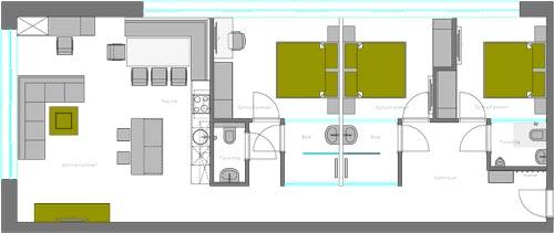 - 3 Schlafzimmer mit jeweils einem Doppelbett