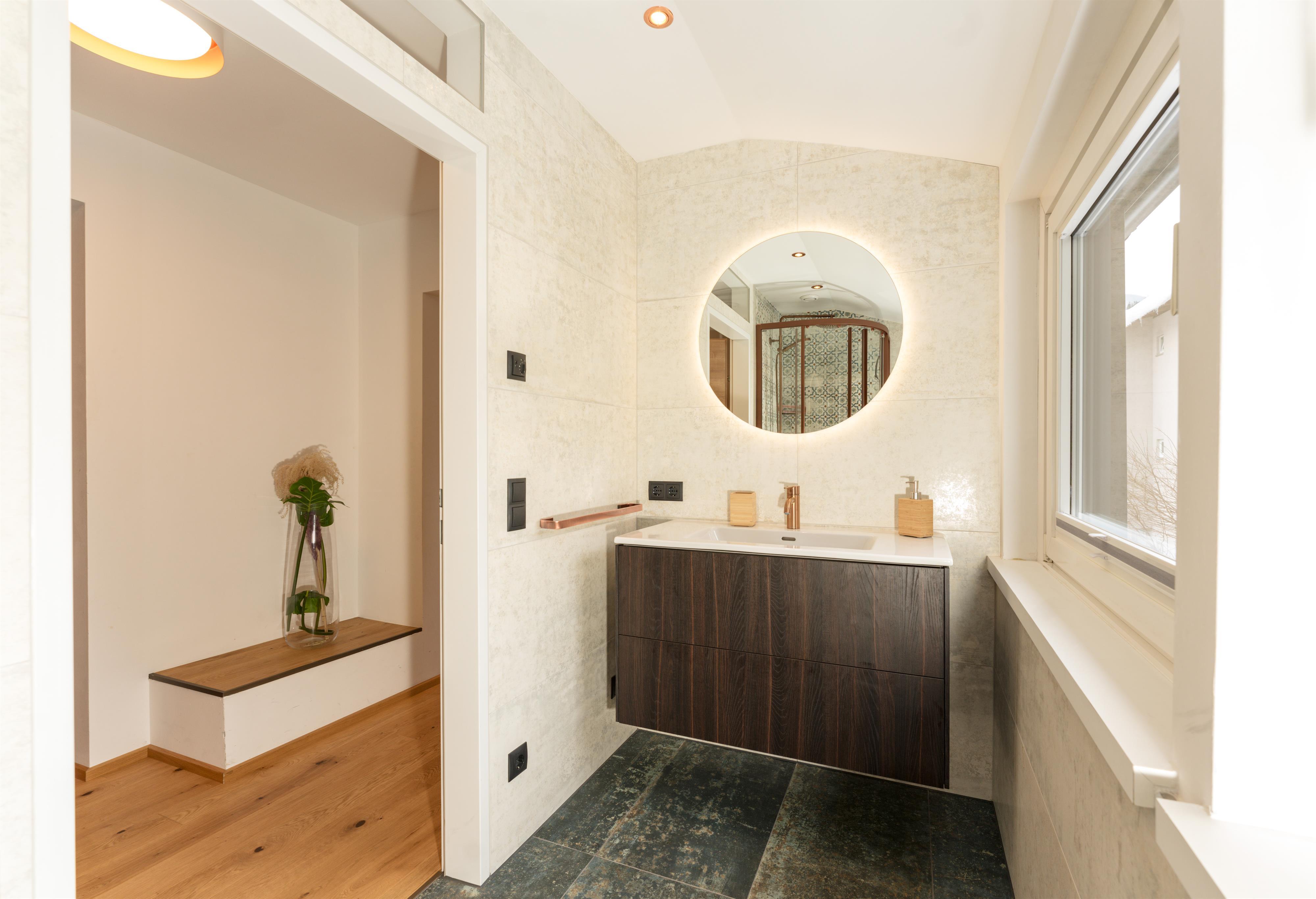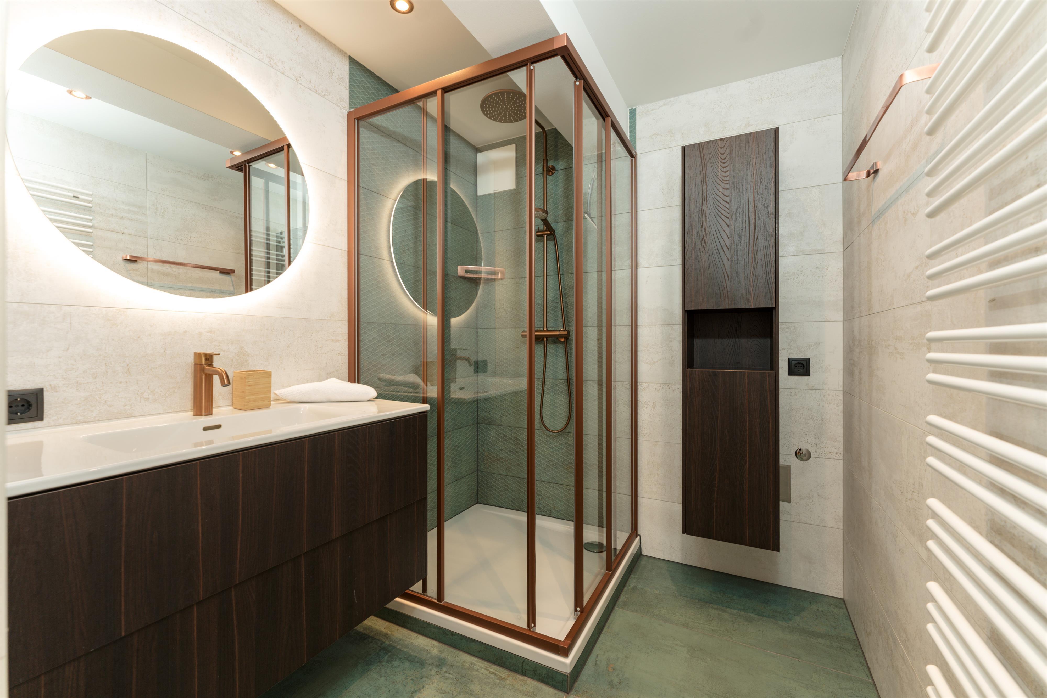 - 2 Badezimmer mit Dusche und Waschtisch