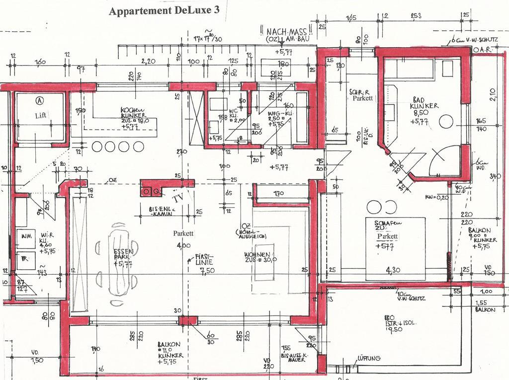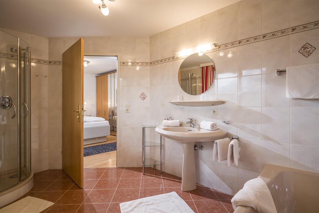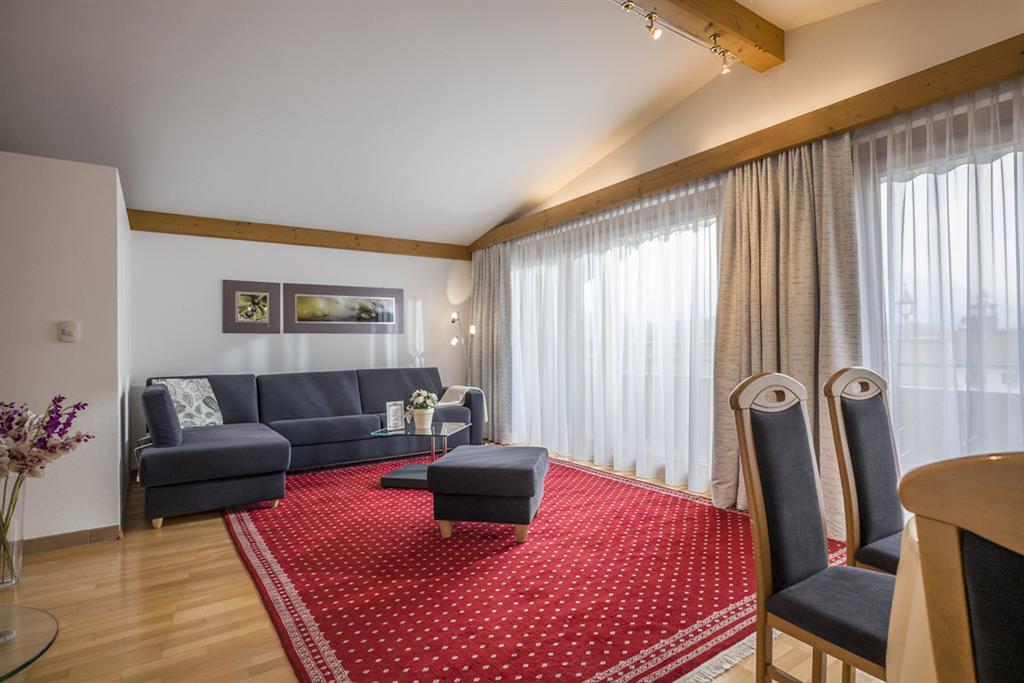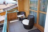 Appartement für max. 4 Personen, ca.85m2 Gesamtfläche + 2 Balkone (Ost+Süd), großer Wohnraum (Wohnen-Essen-Schlafen) 1 Schlafzimmer mit Boxspringbett und en suite Bad, extra Gäste-WC, Wirtschaftsraum mit Waschmaschine/Trockner, gratis WLAN, Telefon, Kabel-TV, Hotelsafe, Lift direkt ins Appartement