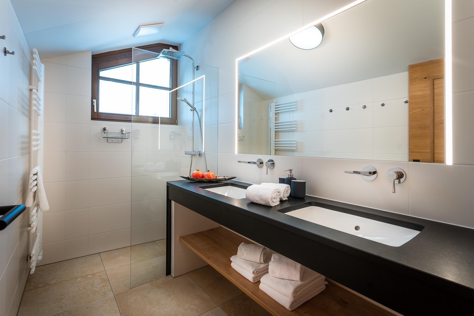 - 1 Bad mit Dusche, Doppelwaschtisch und Fön