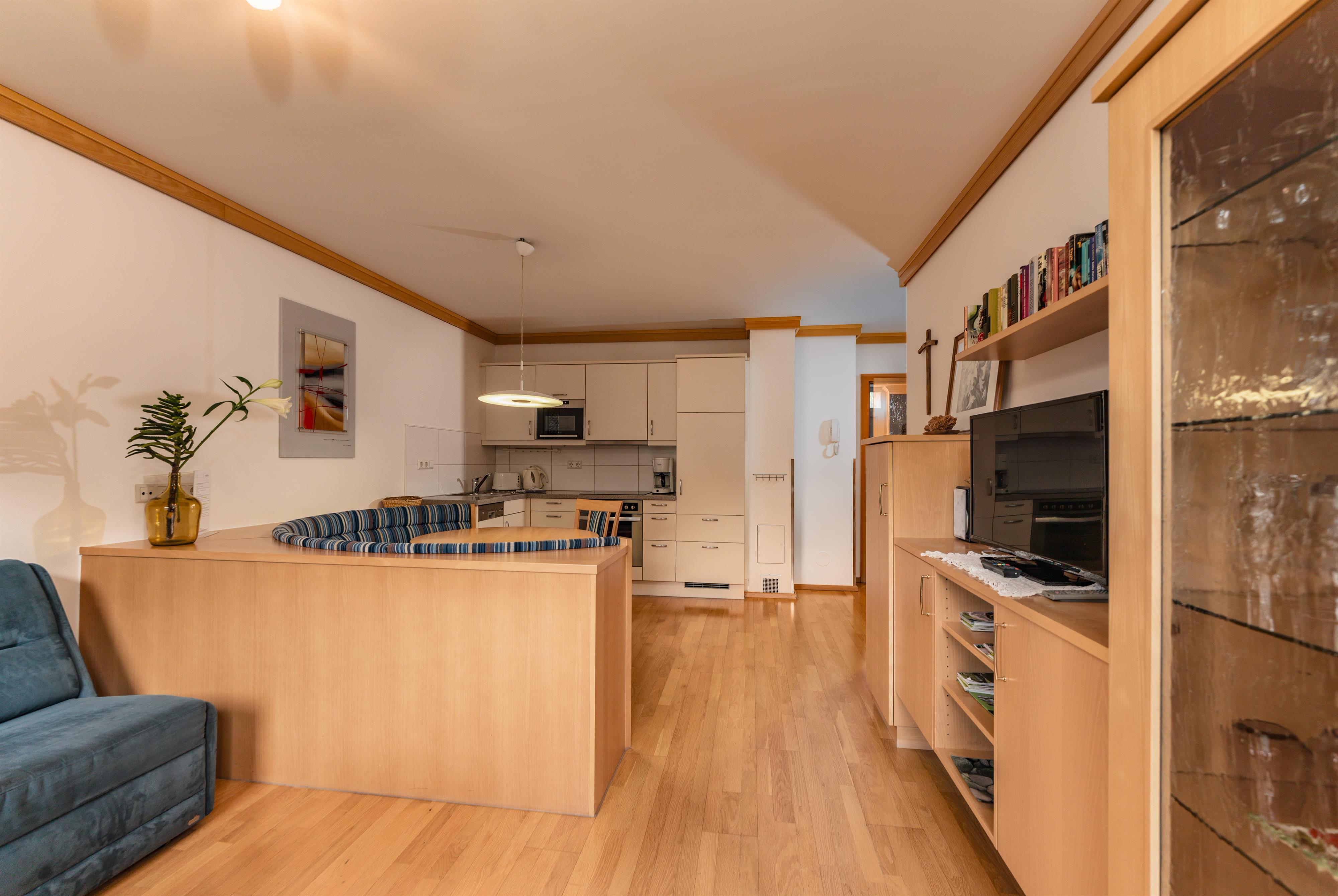 Weitere Annehmlichkeiten wie ein Garagenparkplatz pro Appartement, kostenfreies Wlan, Kabel-TV, ein Lift im Haus sowie ein Fahrrad- und Skiraum mit Skischuhtrockner runden den perfekten Urlaub ab.