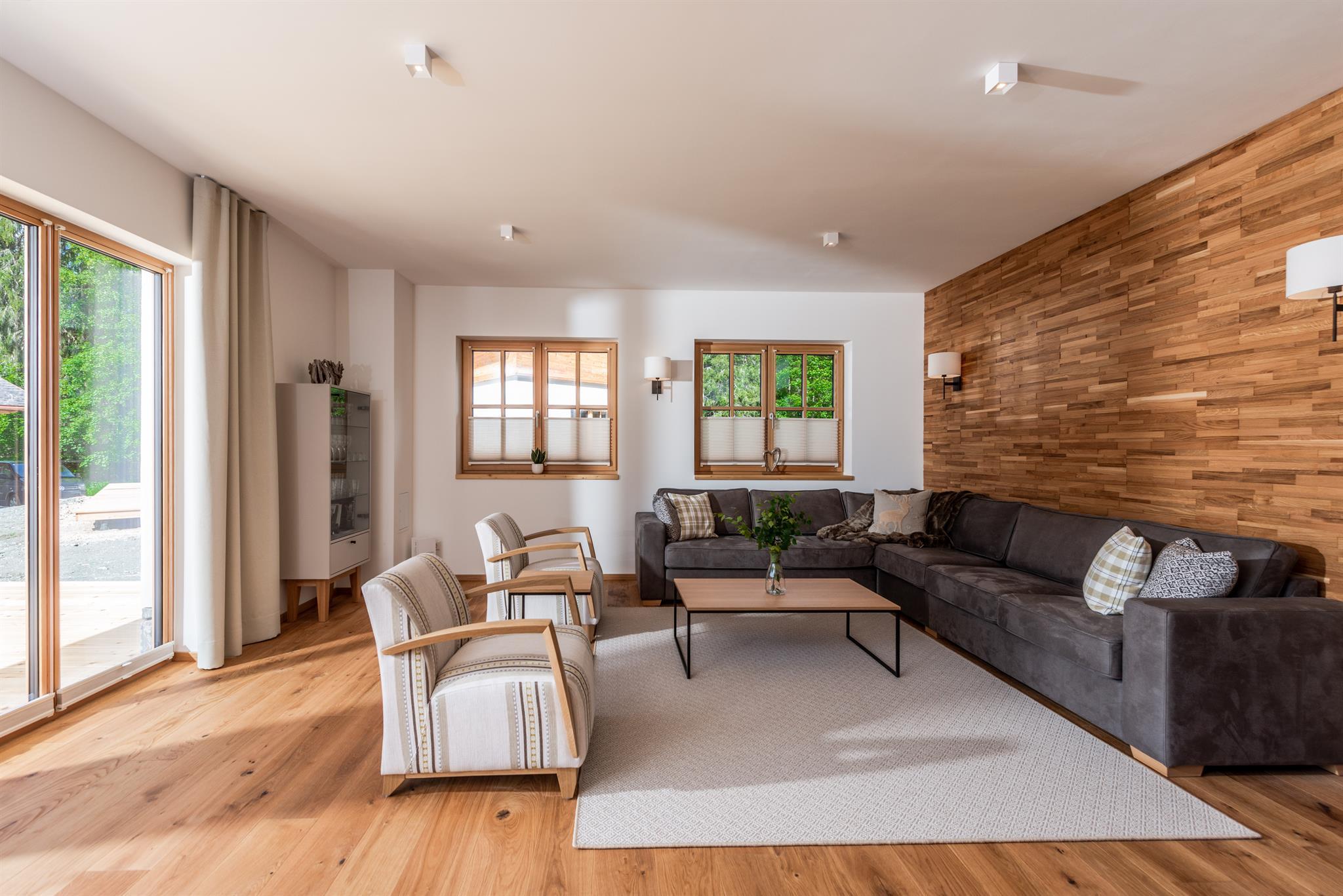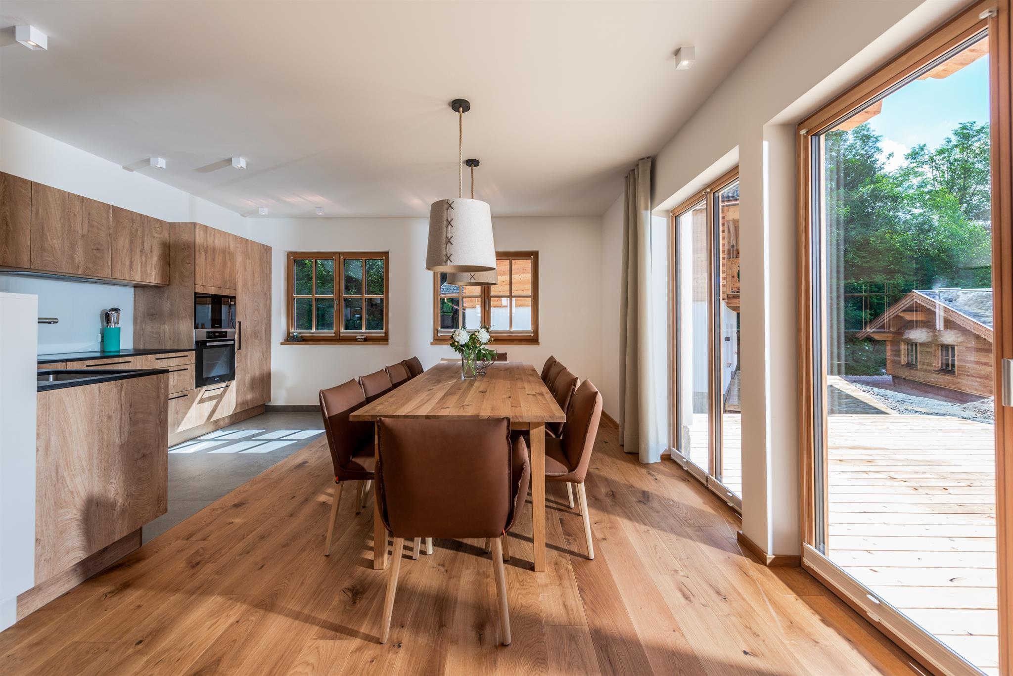 Alle Chalets sind nach SÜDEN ausgerichtet und tauchen dadurch in warmes Tageslicht ein. Die großzügigen Glasfronten und die luftigen Raumhöhen bis zu 5m verbinden alpin-moderne Interieur mit modernster Technologie.