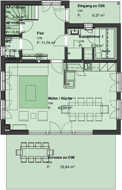 • Großzügige Terrassen, Balkone oder Privatgärten ausgestattet mit Outdoormöbel und Grill