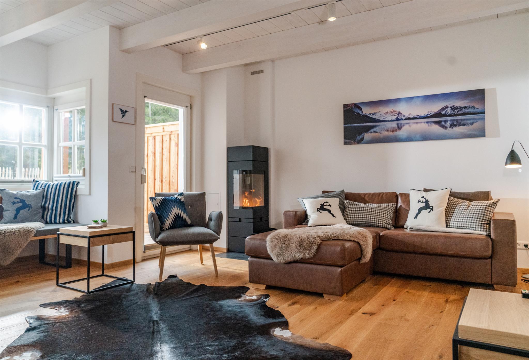 • Offener Kamin/Effektfeuer in vielen Chalets