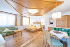 Komfortable Ausstattung: Dusche/WC, Whirlbad, Bidet, Kachelofen, Sitzecke, Wohnecke, Radio, Sat-TV, Telefon, Balkon oder Loggia; 36 bis 42 m².