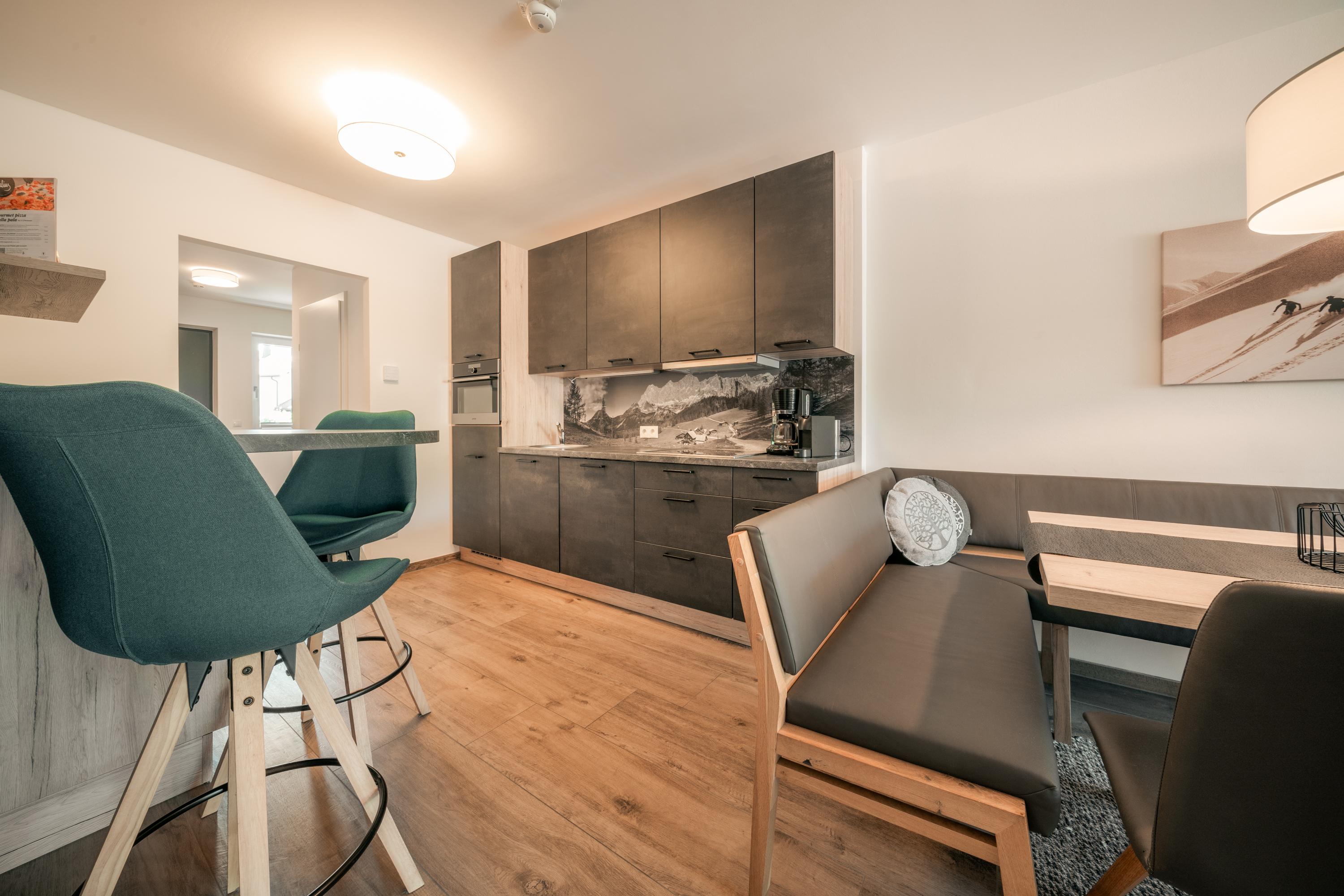 Eben alles was man so braucht. By the way: Das Auto kannst du in der Tiefgarage lassen. Servus im Gustav – 8 Appartements von Smart bis Sky – außerdem mit dabei: Private Sauna im Appartement, eigene Terrasse oder Balkon Top 8 hat keine Balkon, komplett ausgestattete Küchen mit allem PiPaPo, 1-2 Schlafzimmer und Bäder sowie eine Aussicht nach Westen auf die Hochwurzen und das eine oder andere Chi-Chi.