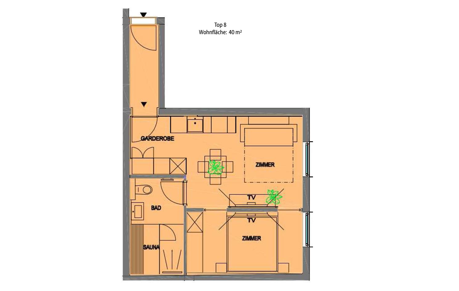 Eben alles was man so braucht. By the way: Das Auto kannst du in der Tiefgarage lassen. Servus im Gustav – 8 Appartements von Smart bis Sky – außerdem mit dabei: Private Sauna im Appartement, eigene Terrasse oder Balkon Top 8 hat keine Balkon, komplett ausgestattete Küchen mit allem PiPaPo, 1-2 Schlafzimmer und Bäder sowie eine Aussicht nach Westen auf die Hochwurzen und das eine oder andere Chi-Chi.