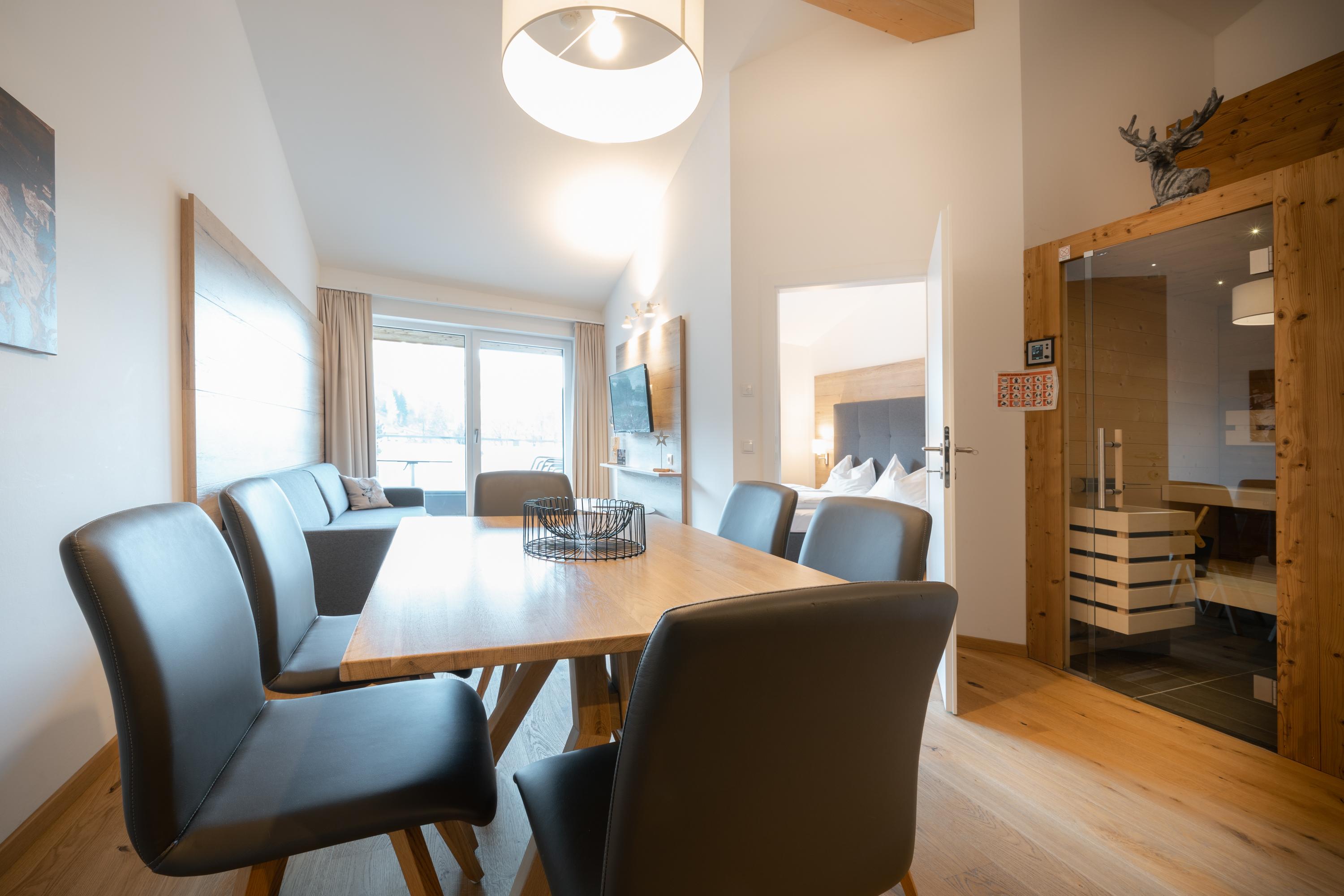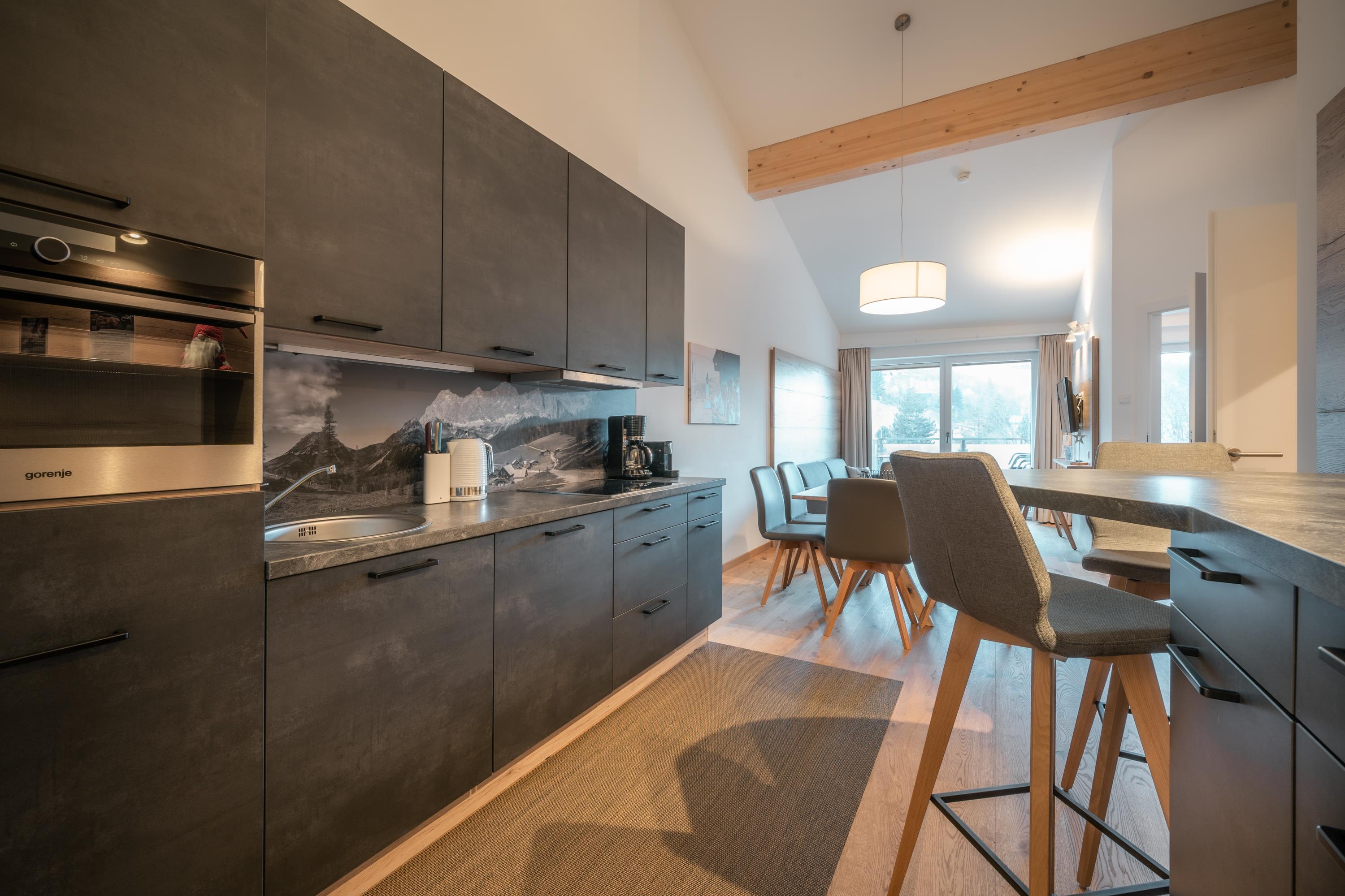 Eben alles was man so braucht. By the way: Das Auto kannst du in der Tiefgarage lassen. Servus im Gustav – 8 Appartements von Smart bis Sky – außerdem mit dabei: Private Sauna im Appartement, eigene Terrasse oder Balkon Top 8 hat keine Balkon, komplett ausgestattete Küchen mit allem PiPaPo, 1-2 Schlafzimmer und Bäder sowie eine Aussicht nach Westen auf die Hochwurzen und das eine oder andere Chi-Chi.