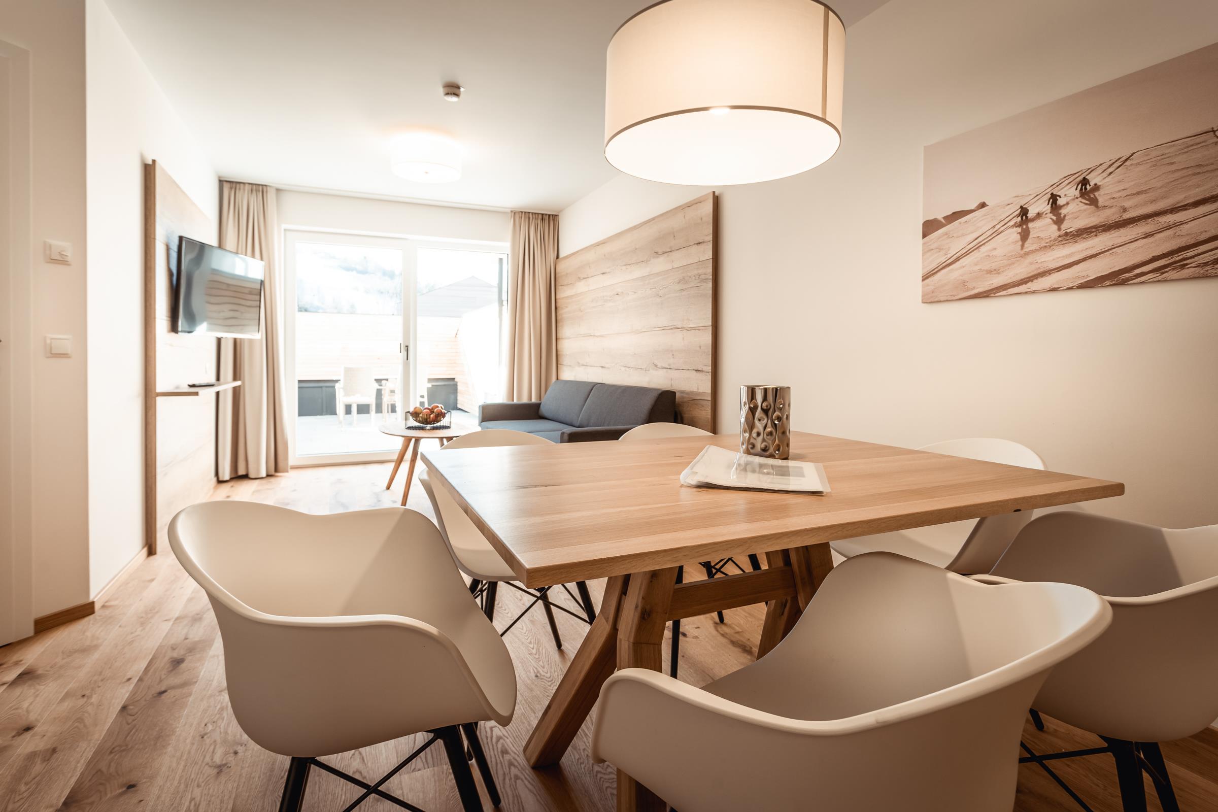 Eben alles was man so braucht. By the way: Das Auto kannst du in der Tiefgarage lassen. Servus im Gustav – 8 Appartements von Smart bis Sky – außerdem mit dabei: Private Sauna im Appartement, eigene Terrasse oder Balkon Top 8 hat keine Balkon, komplett ausgestattete Küchen mit allem PiPaPo, 1-2 Schlafzimmer und Bäder sowie eine Aussicht nach Westen auf die Hochwurzen und das eine oder andere Chi-Chi.
