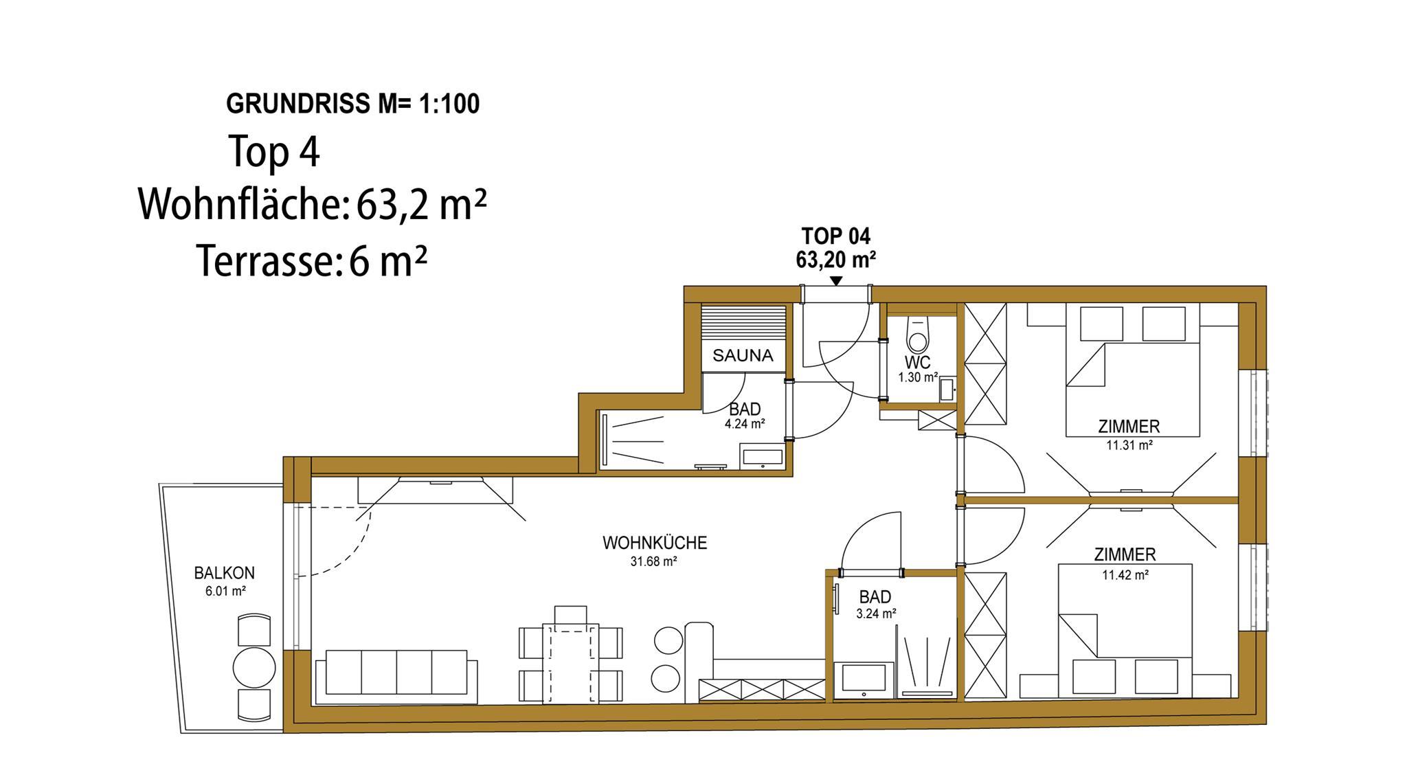 Für 4-6 Personen, 63,2 m² Wohnfläche, 1. OG
