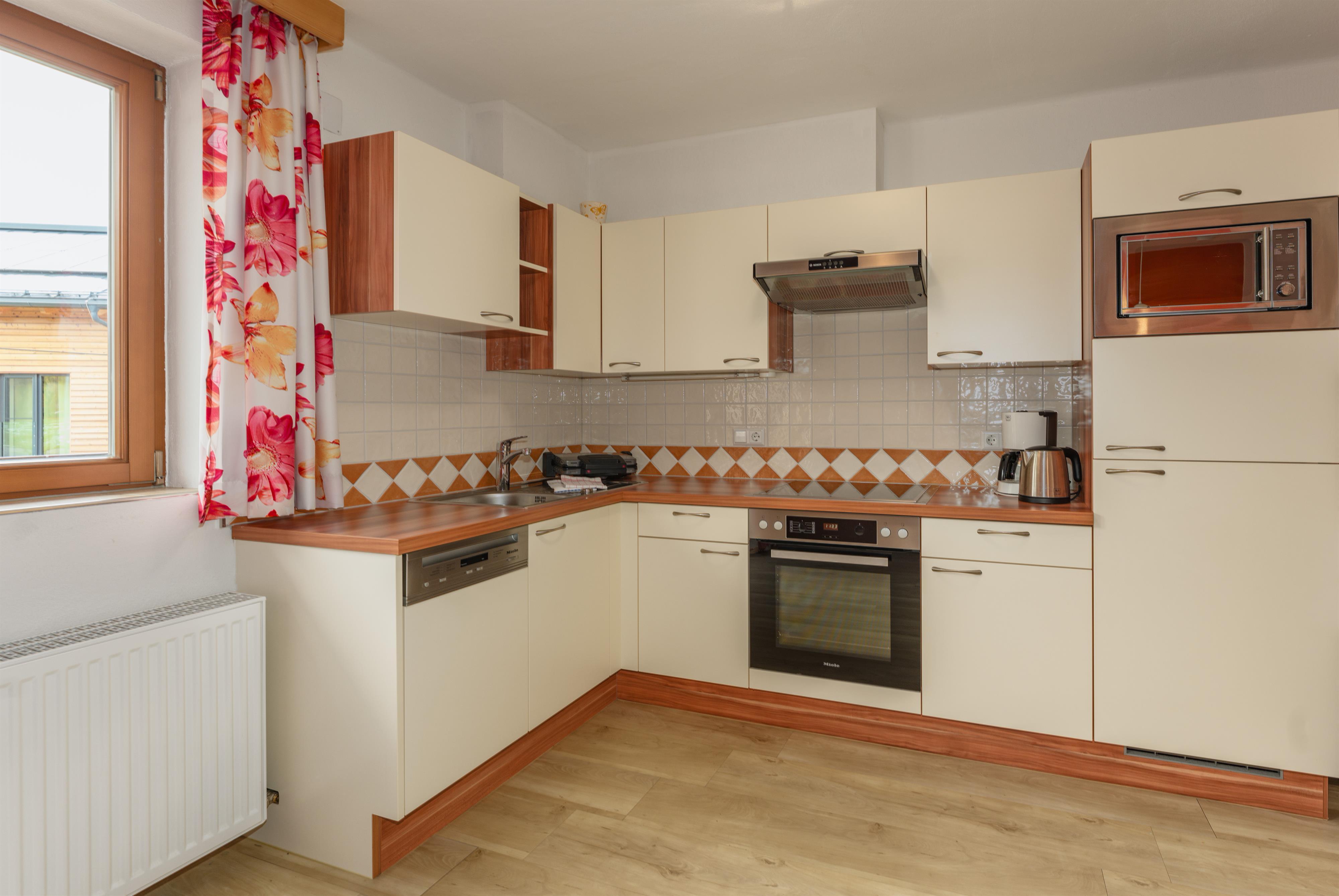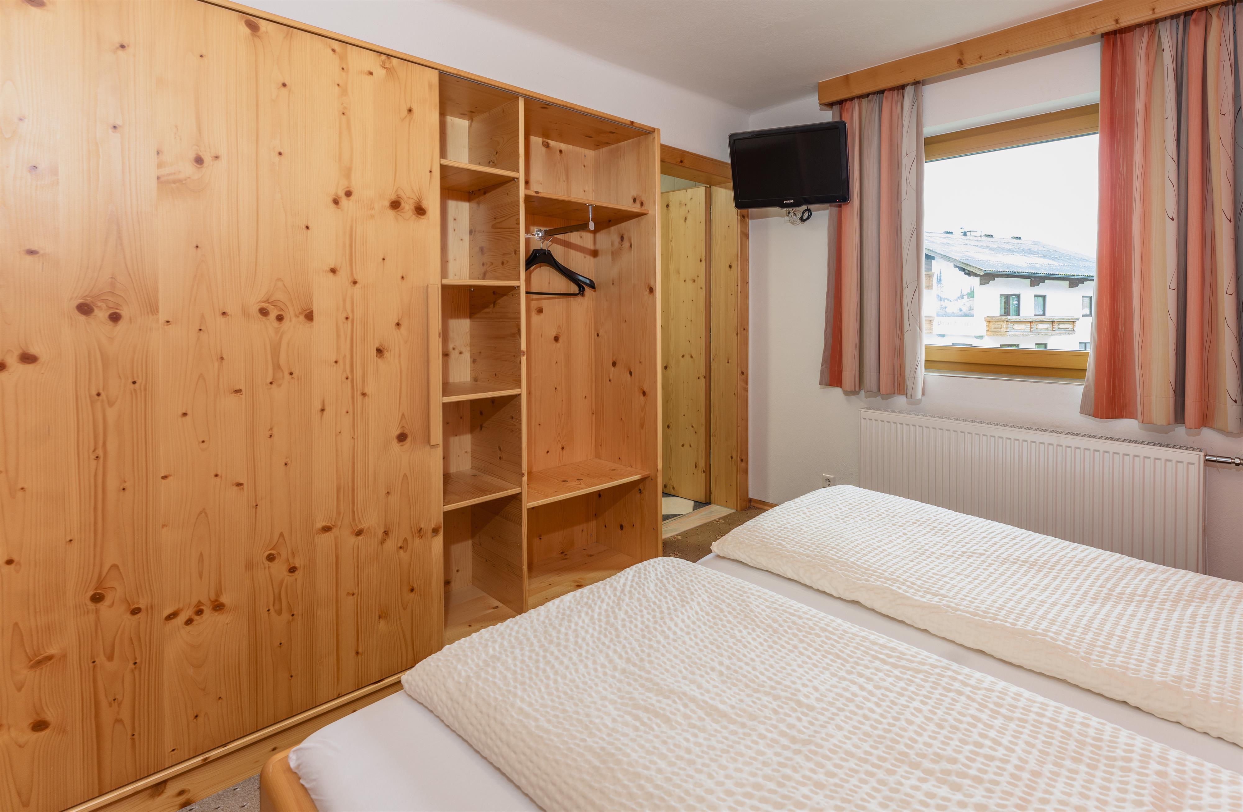 Die zwei größeren Ferienwohnungen bieten je 2 Schlafzimmer und 2 Bäder und in den kleineren befinden sich je 1 Schlafzimmer und 1 Bad. Ein Skiraum mit beheiztem Schuhtrockner finden Sie beim Gästehaus Sieder auch vor.