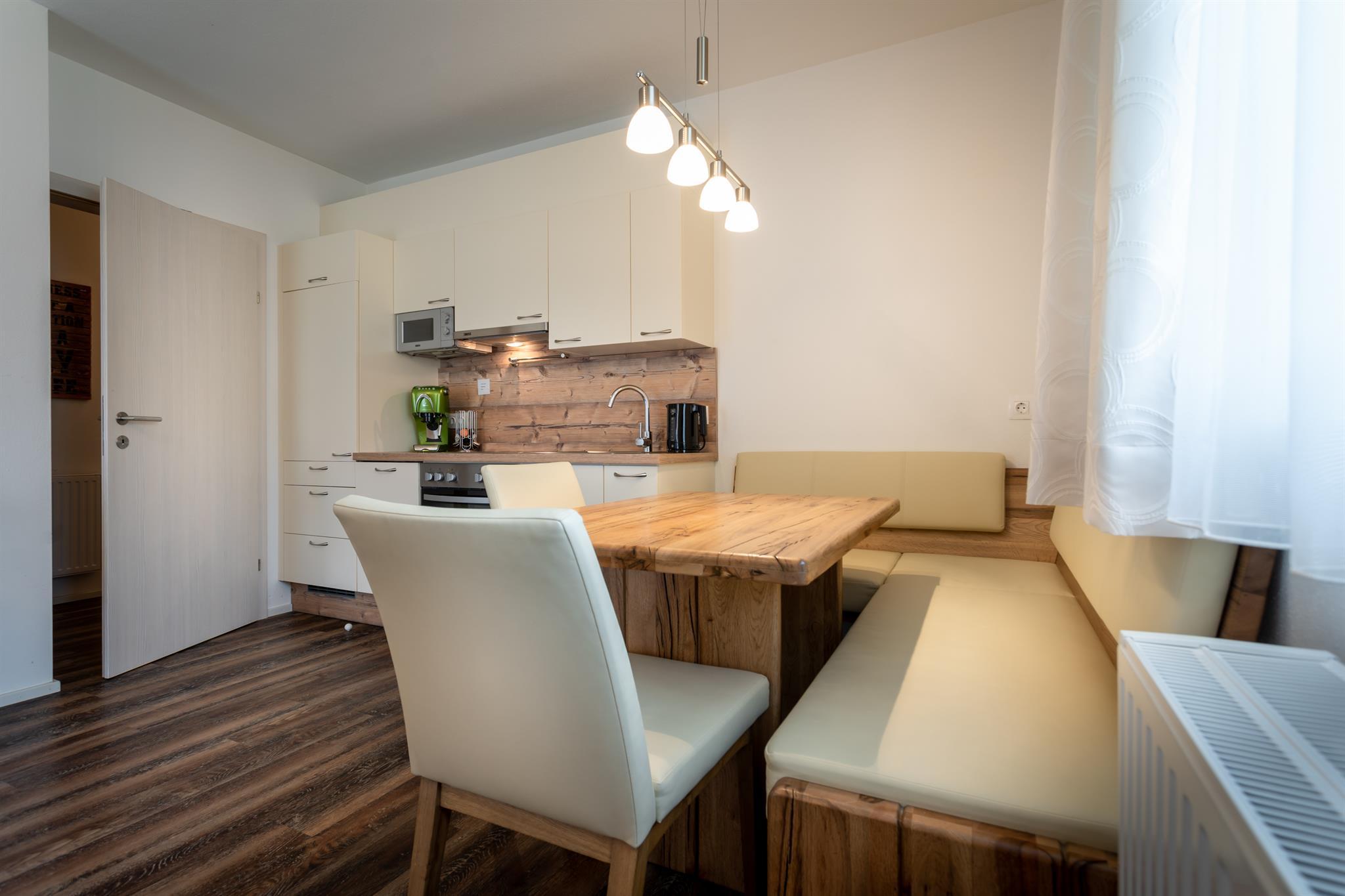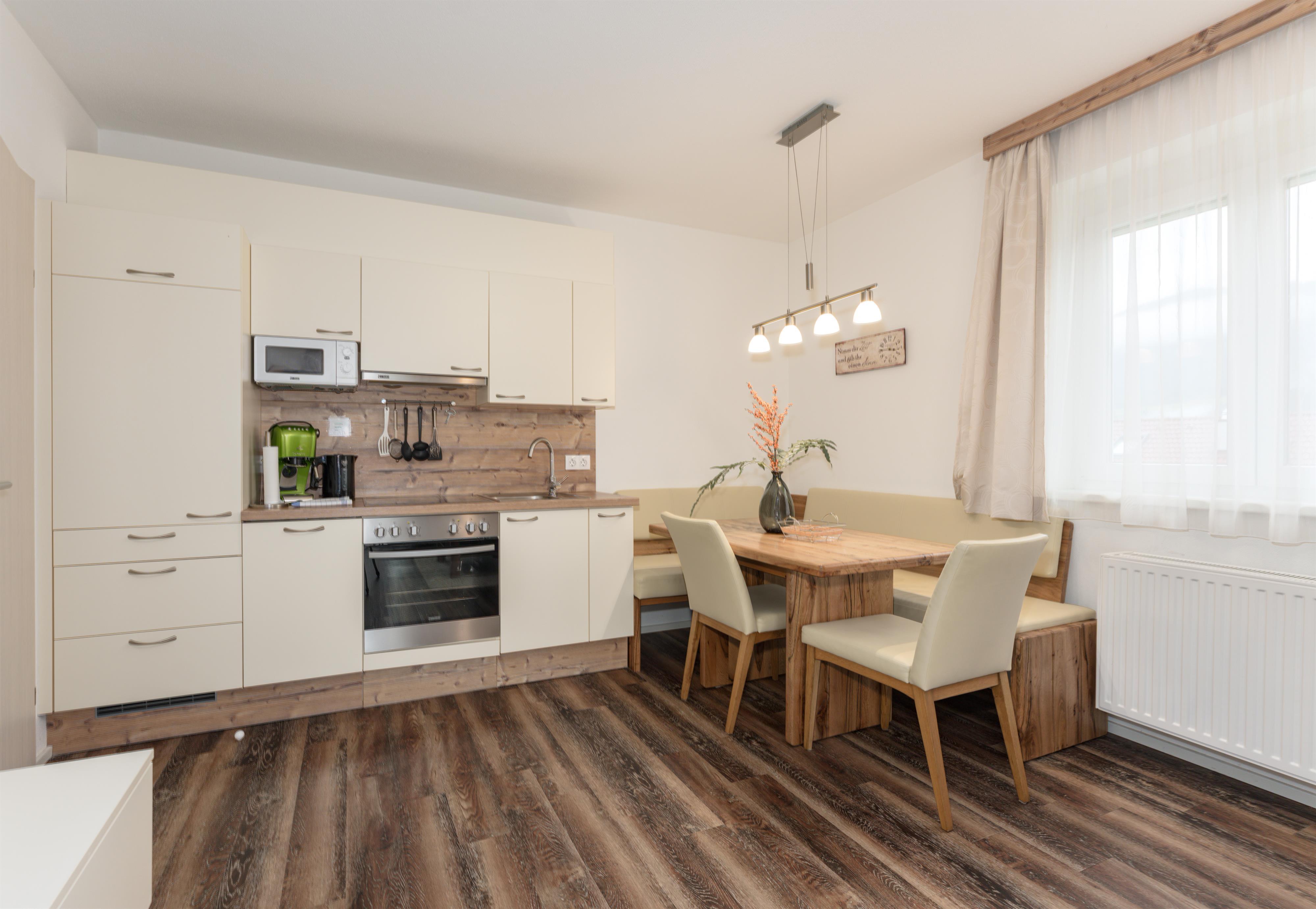 Geboten werden im Haus Martina 4 Nichtraucher-Appartements, die auf Wohnflächen von 45-60 m², Platz für 2 - 6 Personen bieten. Jede Einheit bietet eine voll ausgestattete Küchenzeile, mit Esstisch, ausziehbarem Sofa und Flatscreen, wahlweise ein oder zwei Schlafzimmer mit Zirbenbett, ein Badezimmer mit Dusche, separate Toilette sowie eine Terrasse oder Balkon mit tollem Ausblick auf die umliegende Bergwelt. Neben den bereits erwähnten Annehmlichkeiten stehen zusätzlich ein Skiraum mit Skischuhheizung sowie Parkplätze direkt vor dem Haus bereit. Einem entspannten Urlaub steht in diesem Feriendomizil nichts mehr im Wege.