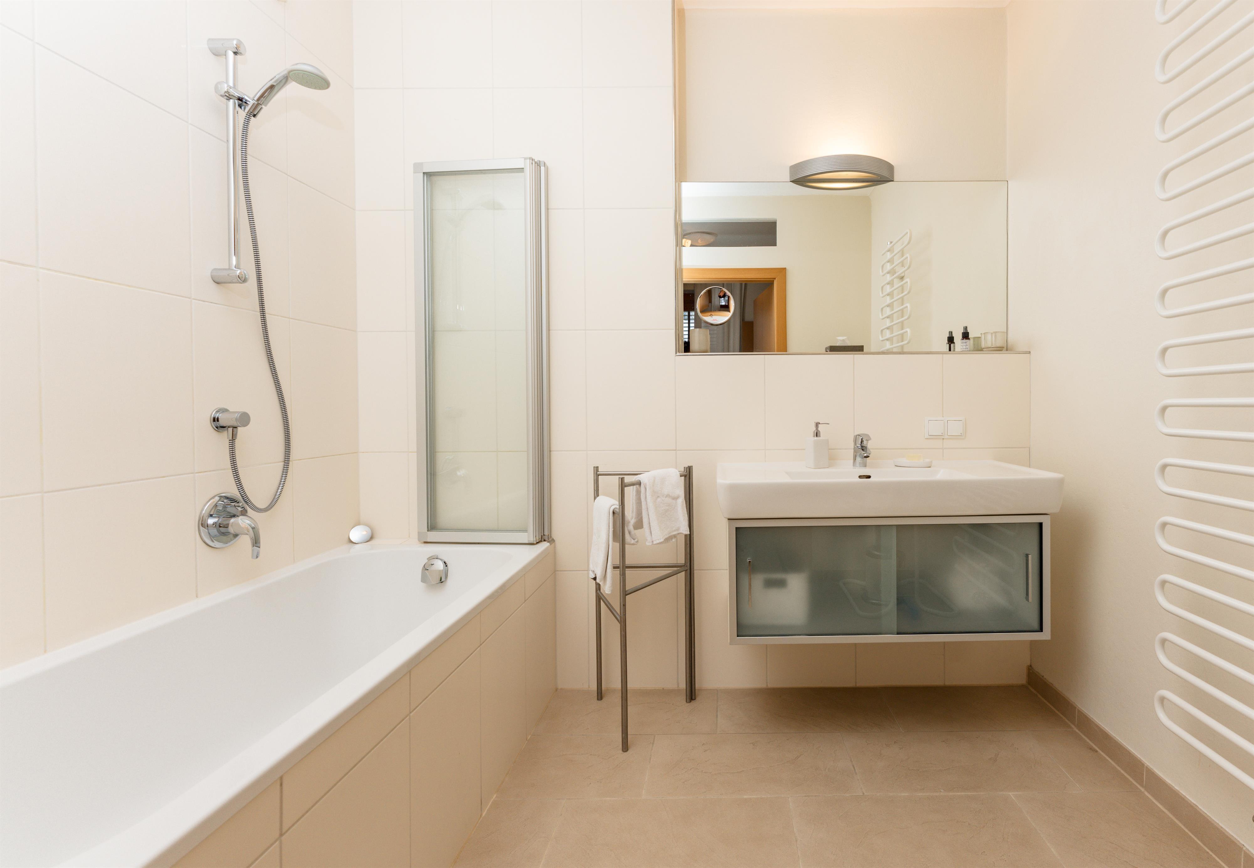 - 1 Badezimmer mit Badewanne und Waschtisch