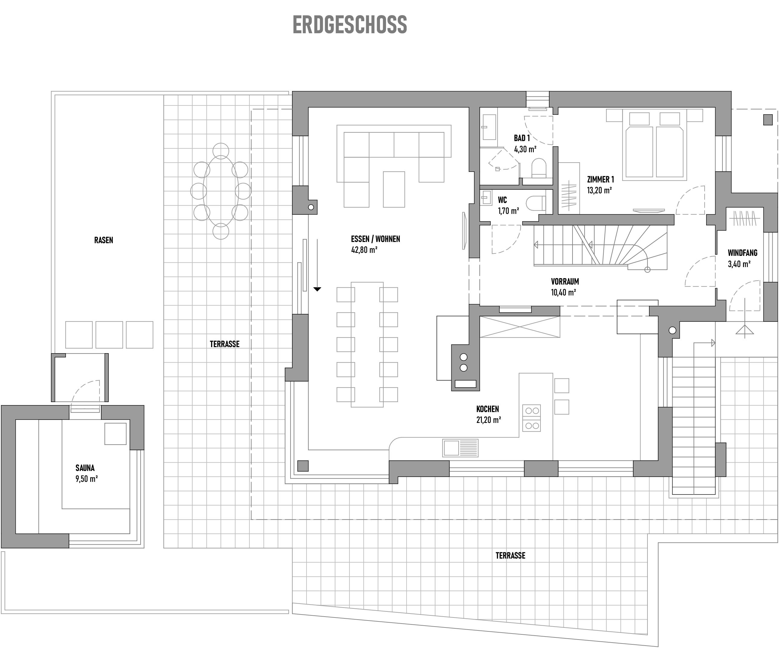 • Separates WC im Erdgeschoss