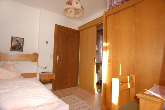 Sehr ruhiges Einzelzimmer im Landhausstil mit unverbautem Ausblick auf die Wiesen der eigenen biologischen Landwirtschaft und Südbalkon. Das Haus Margreth ist 40m vom Haupthaus entfernt.