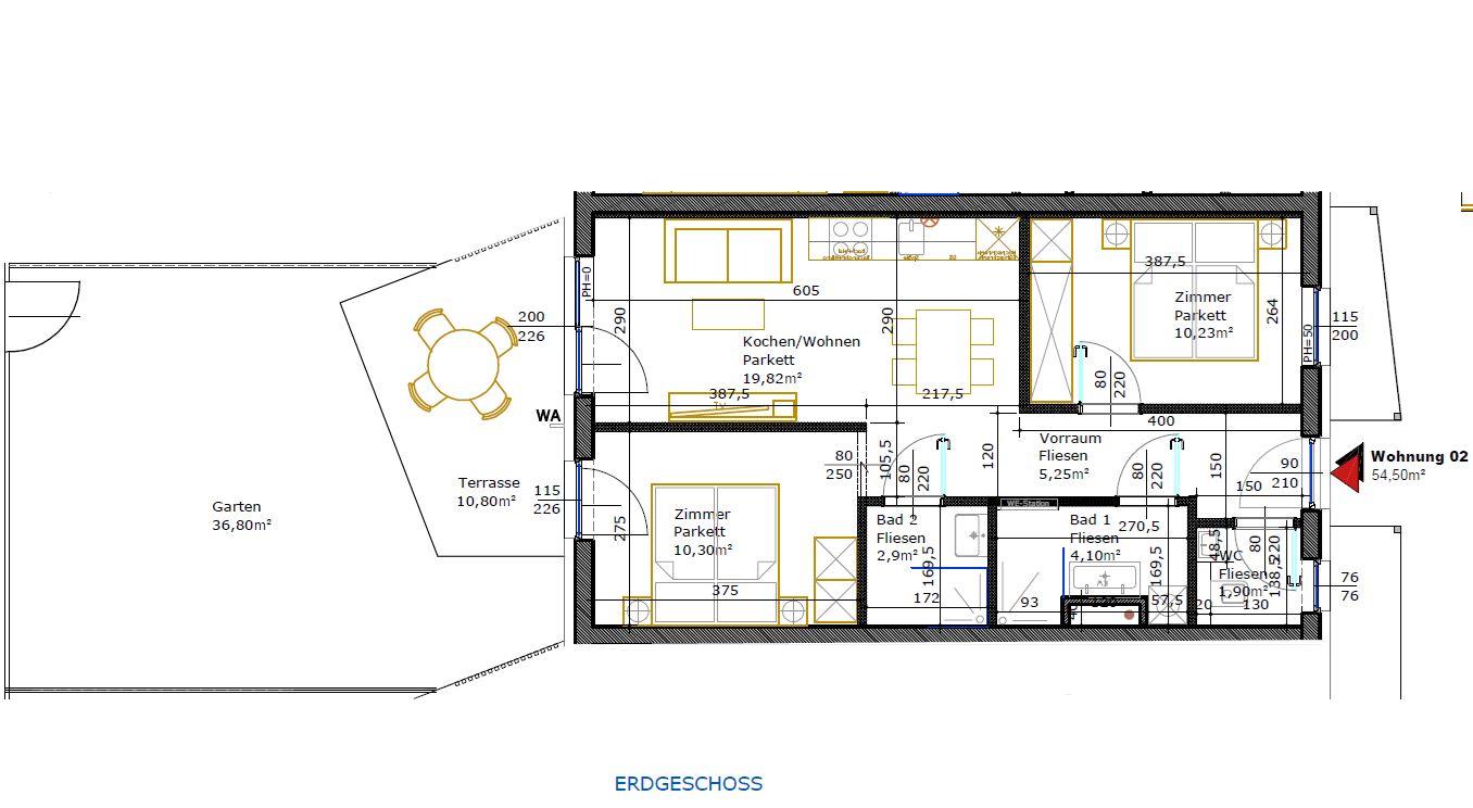 Für 2-4 Personen, 54 m²Wohnfläche, EG