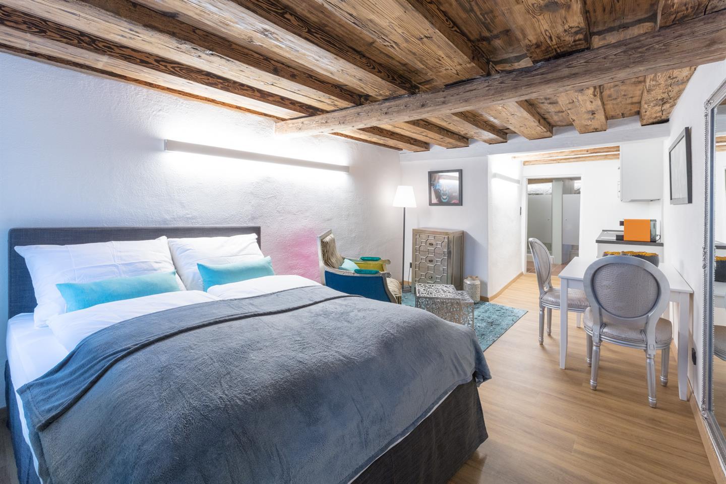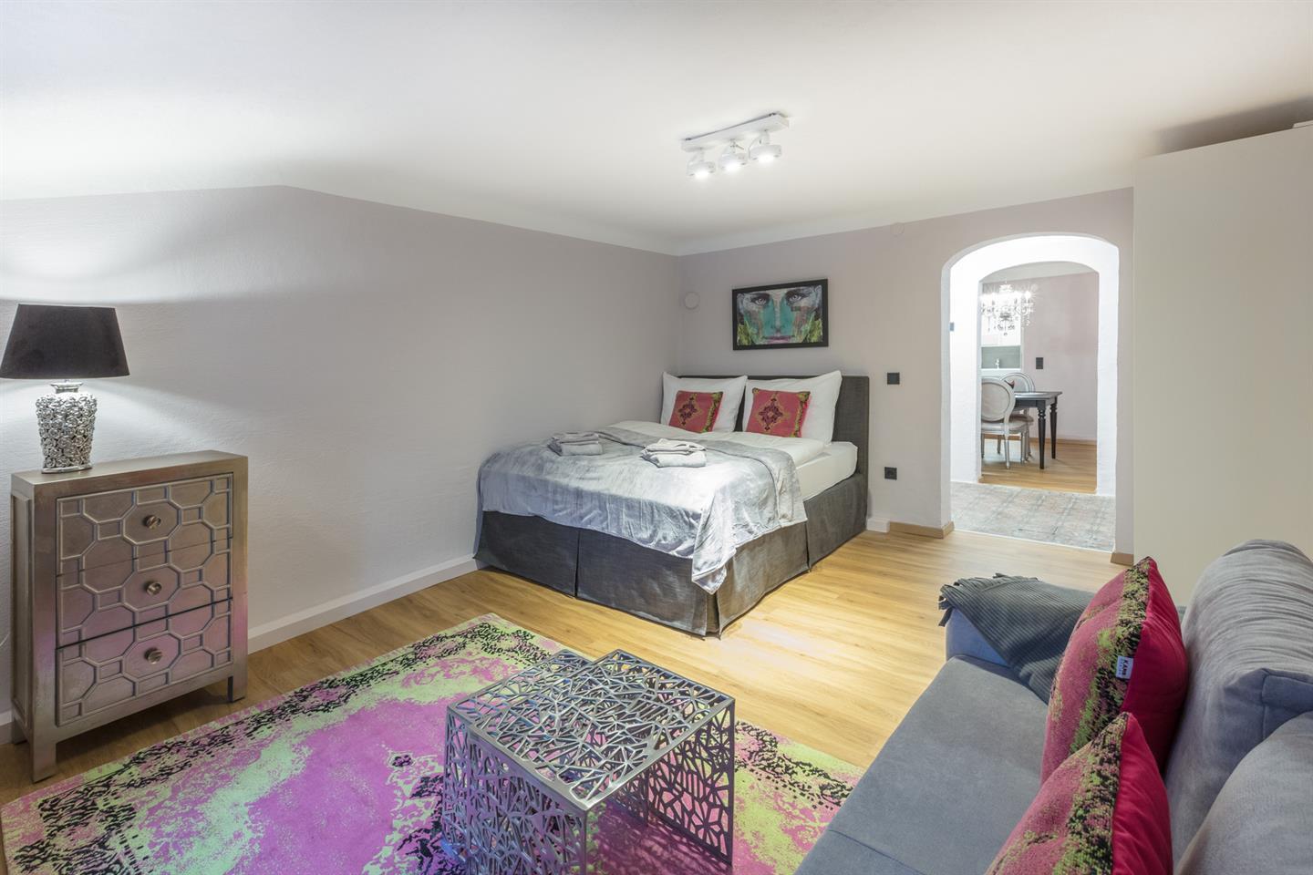 Das 1540 erbaute, historische und denkmalgeschützte Haus besteht aus 5 komplett renovierten und liebevoll gestalteten Apartments und einer für alle frei zugänglichen Dachterrasse und bietet einen traumhaften Blick direkt auf die Festung und über die Salzburger Altstadt. Dank der zentralen Lage liegt die Stein-Lodge nur wenige Schritte von den meisten Sehenswürdigkeiten wie Festung, Salzburger Dom, Mozarts Geburtshaus, Mirabellplatz, Festspielhaus, sowie der Getreidegasse entfernt. Die Stein Lodge liegt in der historischen Steingasse und verbindet historisches Ambiente mit modernem Design, unterstützt durch 25 Kunstdrucke des zeitgenössischen Künstlers Jürgen Fux, die das denkmalgeschützte Haus schmücken. Aufgrund der historischen Struktur des Hauses hat die Stein-Lodge keinen Lift, variierende Raumhöhen und ist mit denkmalgeschützten historischen Türen und Fenstern ausgestattet. Die modern renovierten Räume, direkt am Felsen des Kapuzinerberges, die zum Teil auch im Gebäude sichtbar sind, sowie die Kunstwerke, geben den Apartments ihren einzigartigen Charme. Die für alle Gäste frei zugängliche Dachterrasse, mit dem einzigartigen Ausblick auf die Festung und die Altstadt rundet das außergewöhnliche Ambiente der Stein-Lodge ab. Die Steingasse liegt mitten in der Salzburger Altstadt und ist der perfekte Ausgangspunkt für Sightseeing, Restaurants, Shoppingmöglichkeiten und vieles mehr. Die Unterkunft eignet sich besonders gut für Paare, Alleinreisende, Geschäftsreisende, Familien und Gruppen. Durch die zentrale Lage erreichen Sie den Salzburger Dom nach 400m, das Mozarts Geburtshaus nach 500 m, die Getreidegasse nach 600 m und die Festung nach 800 m. Einfach und schnell zu Fuß. Die Apartments der Stein-Lodge bieten: Kostenlose Handtücher und Bettwäsche Kompakte Küche mit Mikrowelle mit Grillfunktion, Toaster, Ceran-Herd, Kühlschrank, Cremesso Espressomaschine, Geschirr, Besteck, Gläser und Töpfe Haartrockner Kostenloses Highspeed Internet Kabel-TV sowie Lautsprecher mit Dockingstation Bügeleisen (auf Anfrage) Kostenloser Hochstuhl (auf Anfrage) Kostenloses Babybett (auf Anfrage) Alle unsere Gäste haben Zugang zur: Dachterrasse inklusive einzigartigem Ausblick Kostenlosen Benutzung der Waschmaschine und des Trockners Kostenlosen Benutzung der Fahrräder