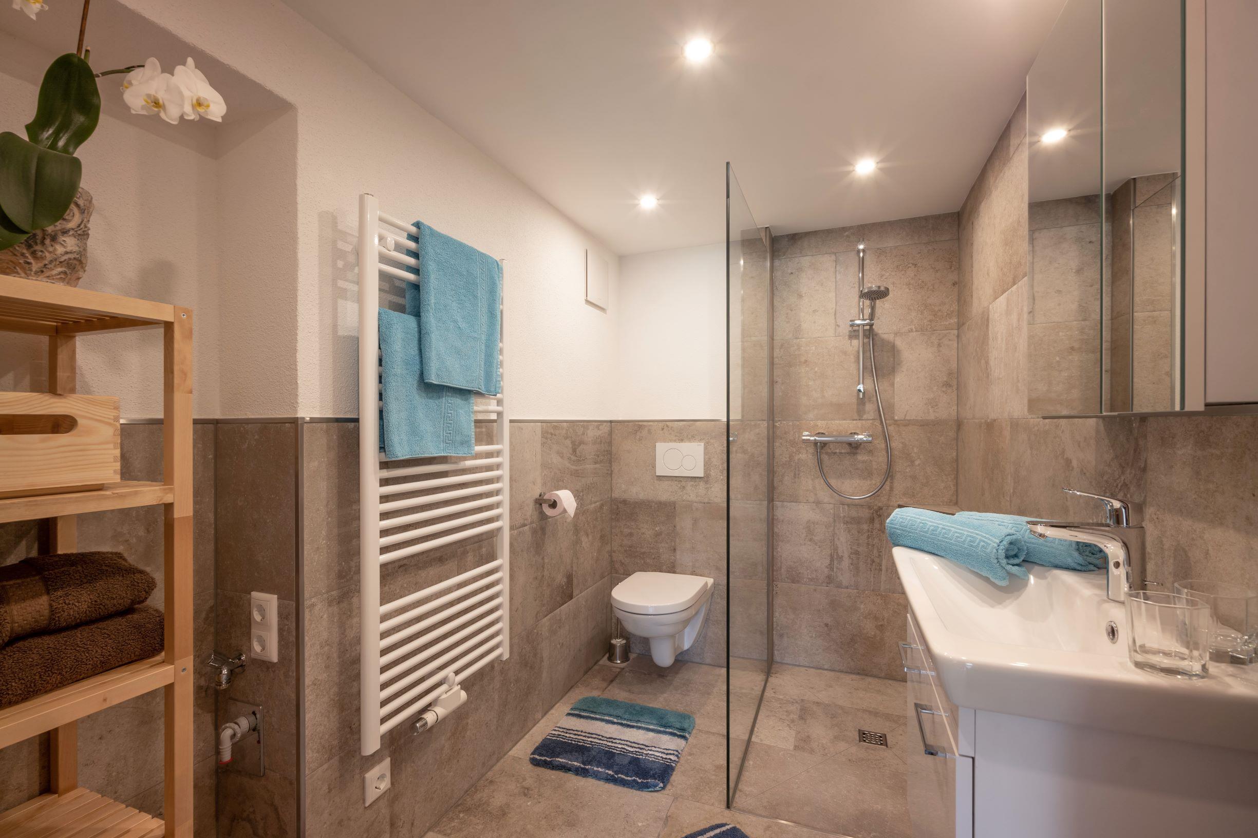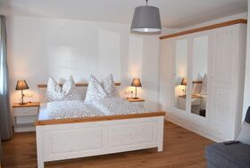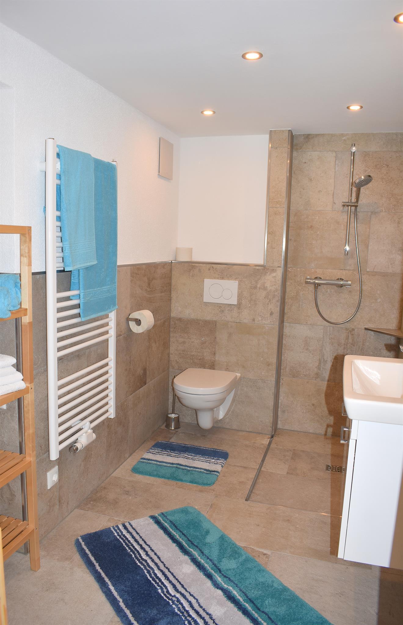 Neue helle großzügige Ferienwohnung mit 1 Schlafzimmer, gemütliche Wohnküche, Geschirrspüler, Dusche/WC, TV & Balkon