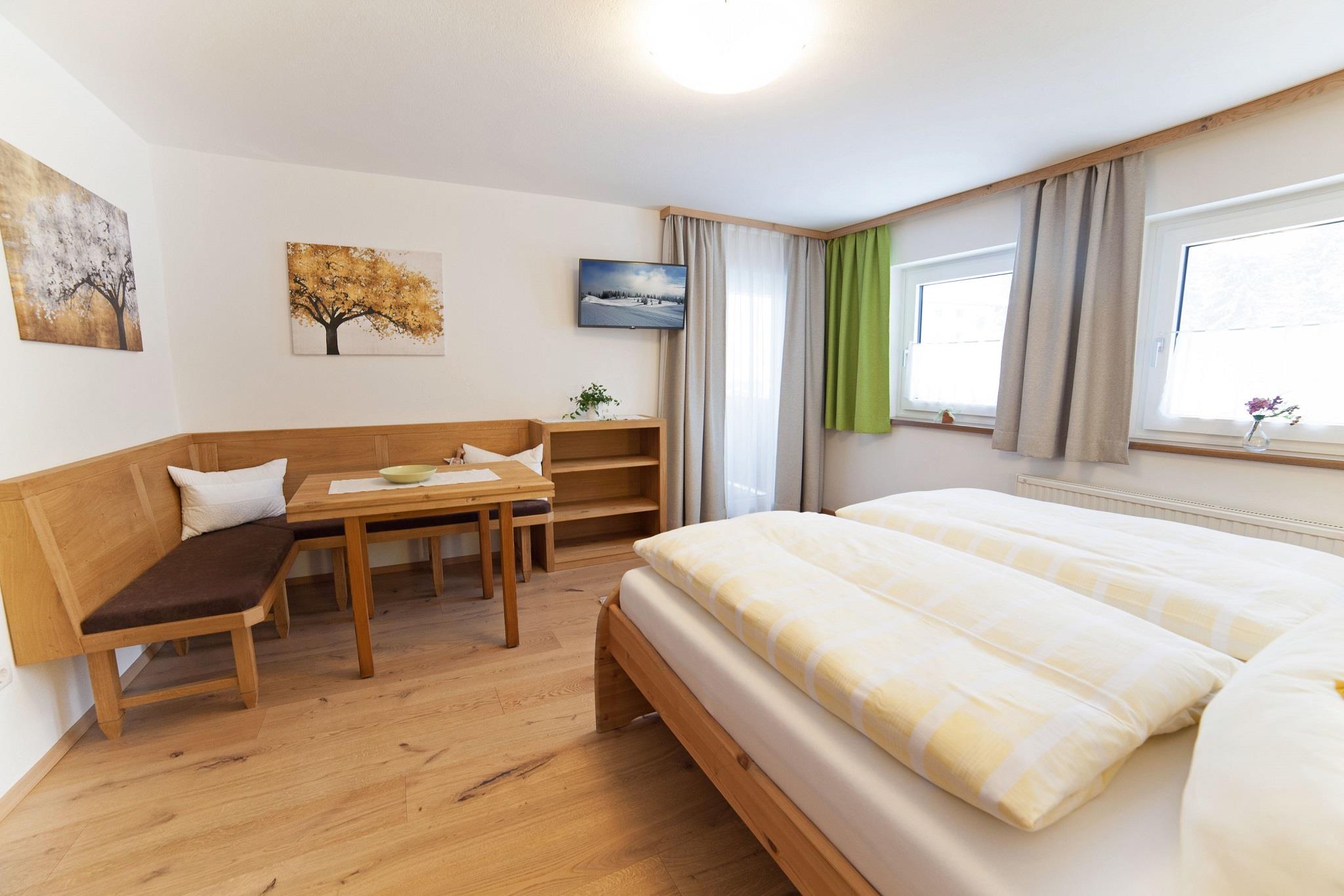 Familienzimmer für 4 Personen (2 Erwachsene und 2 Kinder) mit Balkon, bestehend aus zwei getrennten Schlafzimmern mit Verbindungstüre. 1 Doppelzimmer mit Sitzecke, 1 Kinderzimmer mit Etagenbett, 1 gemeinsames Badezimmer mit Dusche und WC, Föhn, 2 x Flachbild-TV, Radio, Heizung, 2 Schränken, Wasserkocher, Wäschespinne. Zimmergröße: 35 m². Bettengröße: 1 Etagenbett, 1 Doppelbett. Kostenfreies WLAN steht Ihnen in allen Zimmern zur Verfügung.