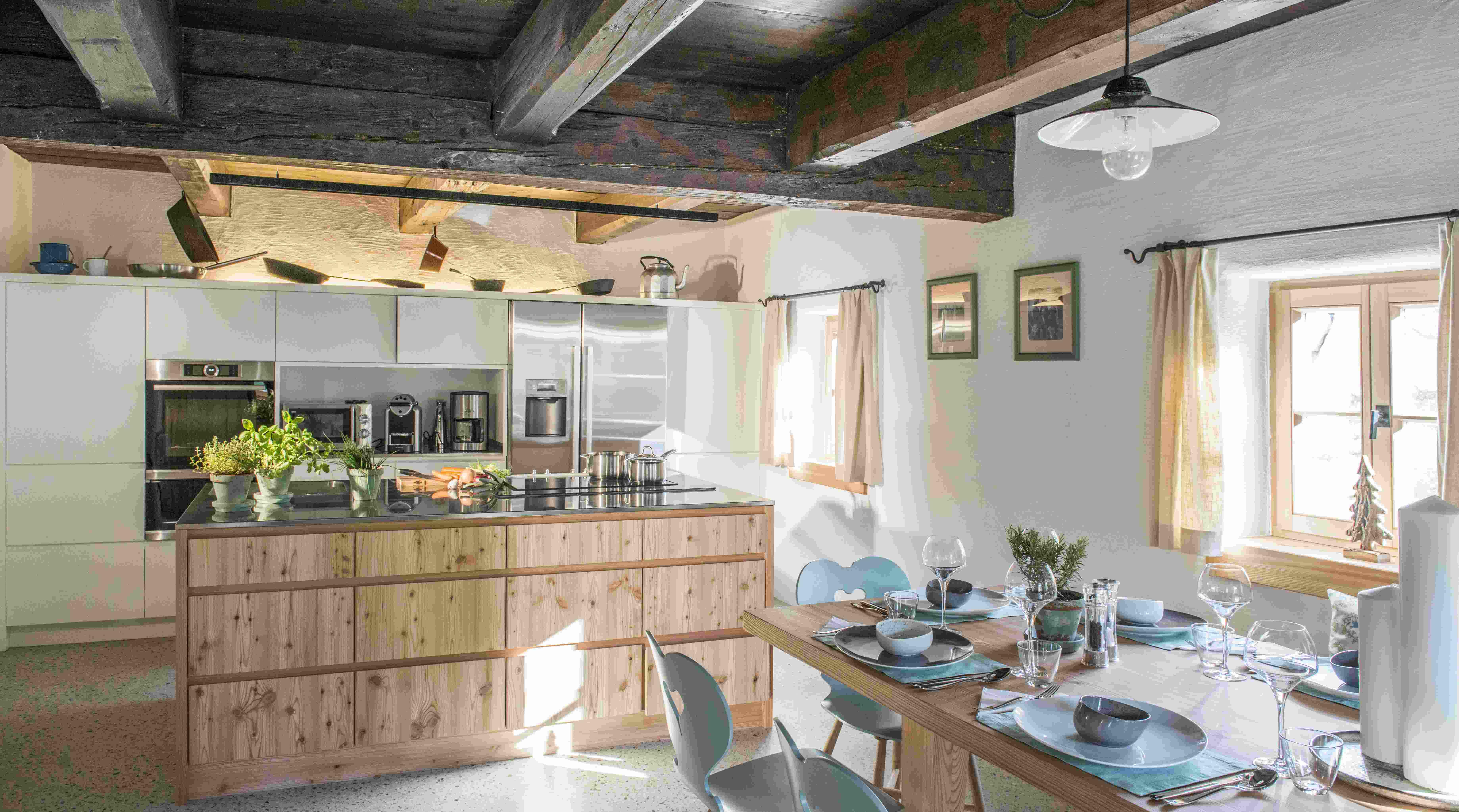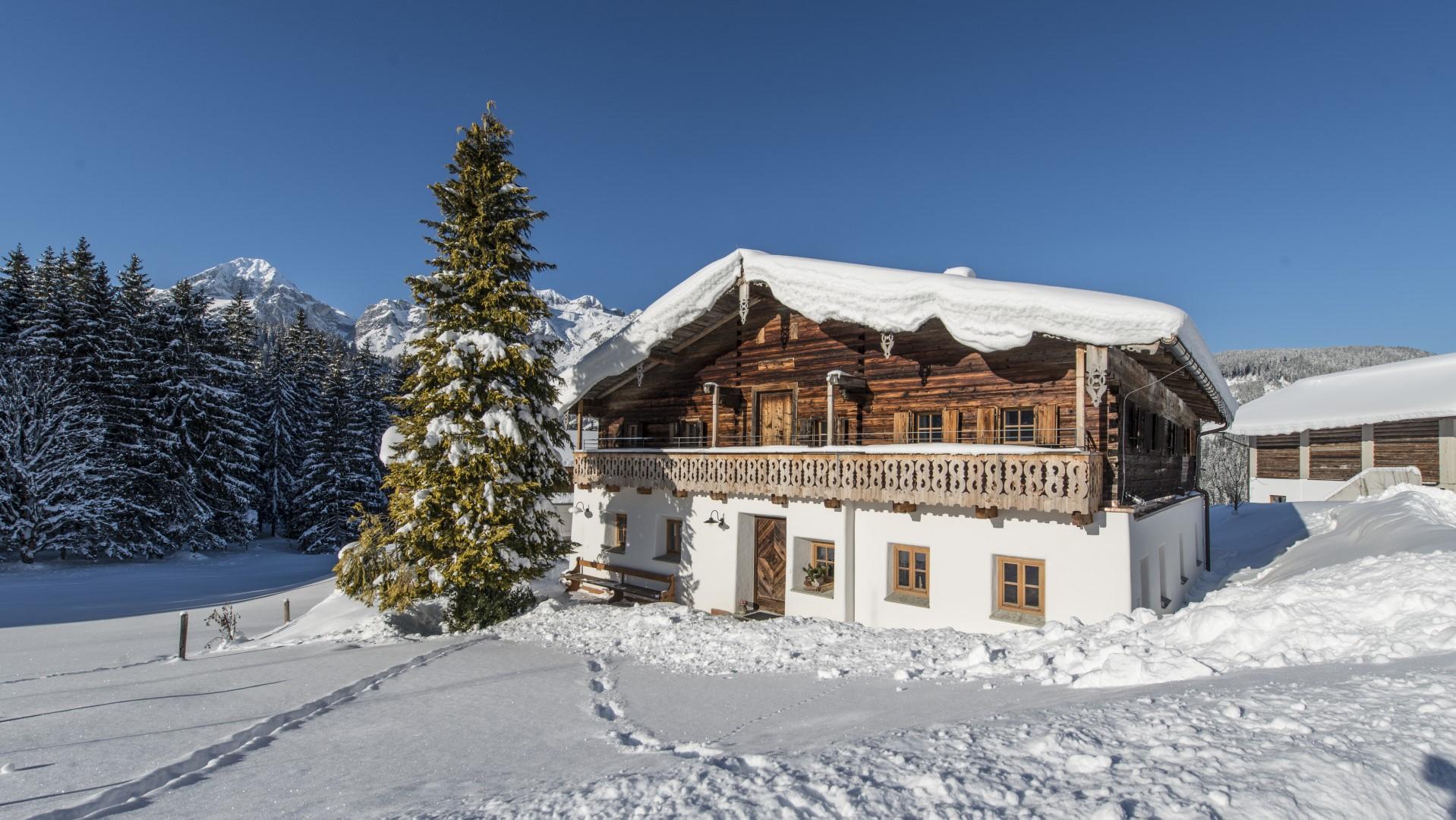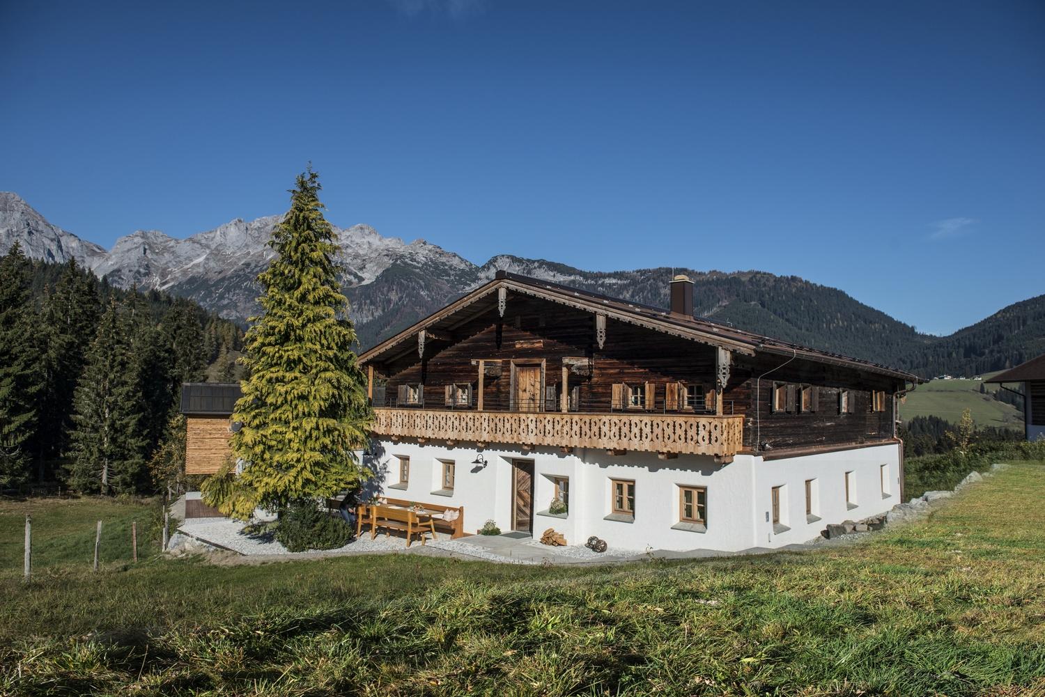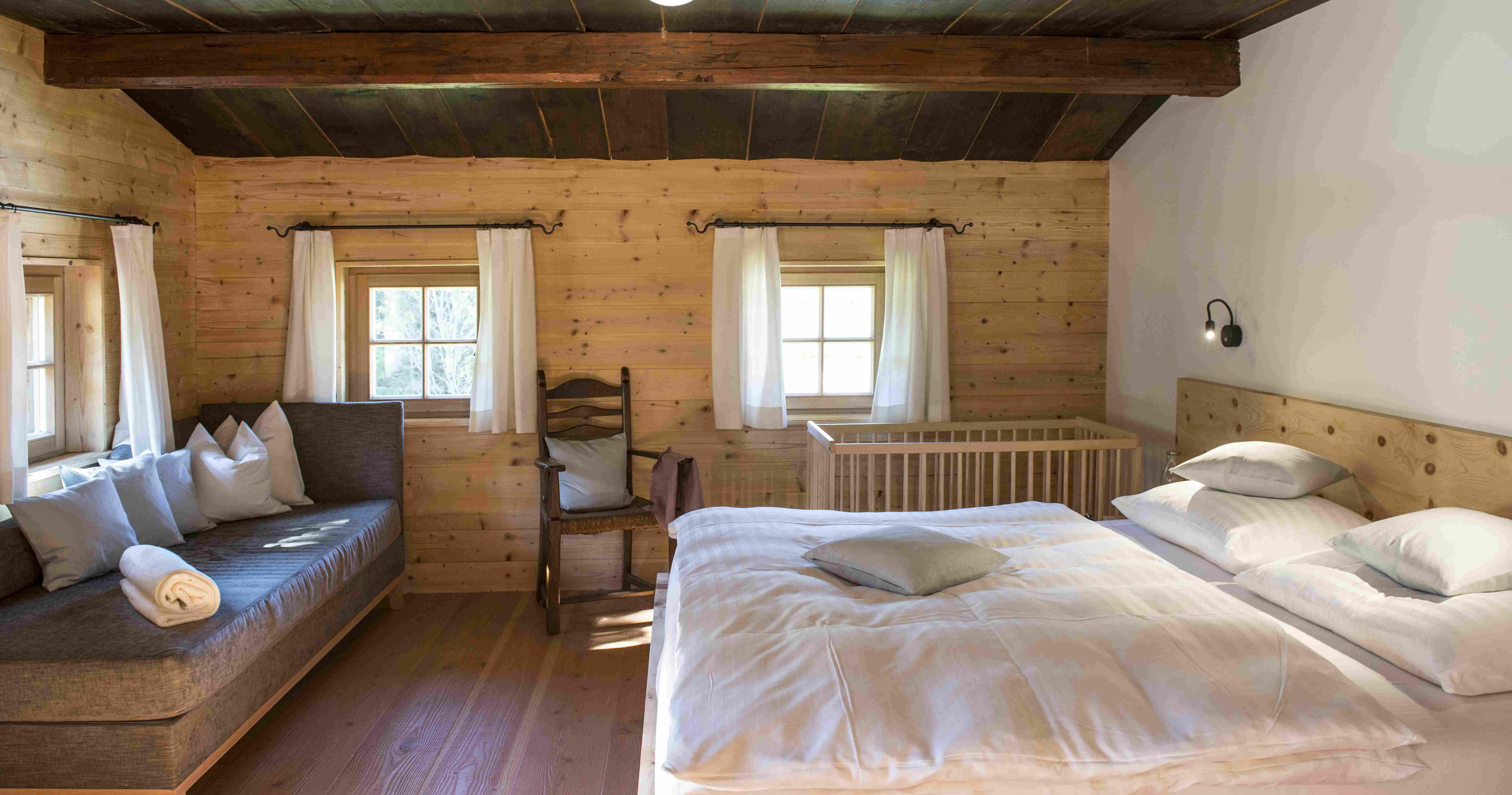 Ein Bauernhof mit Luxuschalet auf 950m Seehöhe, als Rückzugsort für Dauerläufer. Ein Bauernhaus vor Generationen für Generationen erbaut - ein Ferienhaus in Alleinlage für Naturliebhaber. Platz bis 8 Personen und mit Zusatzpersonen bis 12 Personen in 4 Schlafzimmer, 2 Badezimmer, Stube als Wohnzimmer, Bauernküche, Gewölbe, Waschküche, Sauna, Rückzugsecken und geheiztes Sportdepot. Die alten Balkenwände im Ferienhaus offen und bewusst erhalten. Alles Neue dezent und handwerklich gekonnt eingebaut. Unaufdringlich und doch sichtbar. Das Chalet Käth & Nanei bietet unverzichtbaren Wohnkomfort in einzigartiger Weise.
