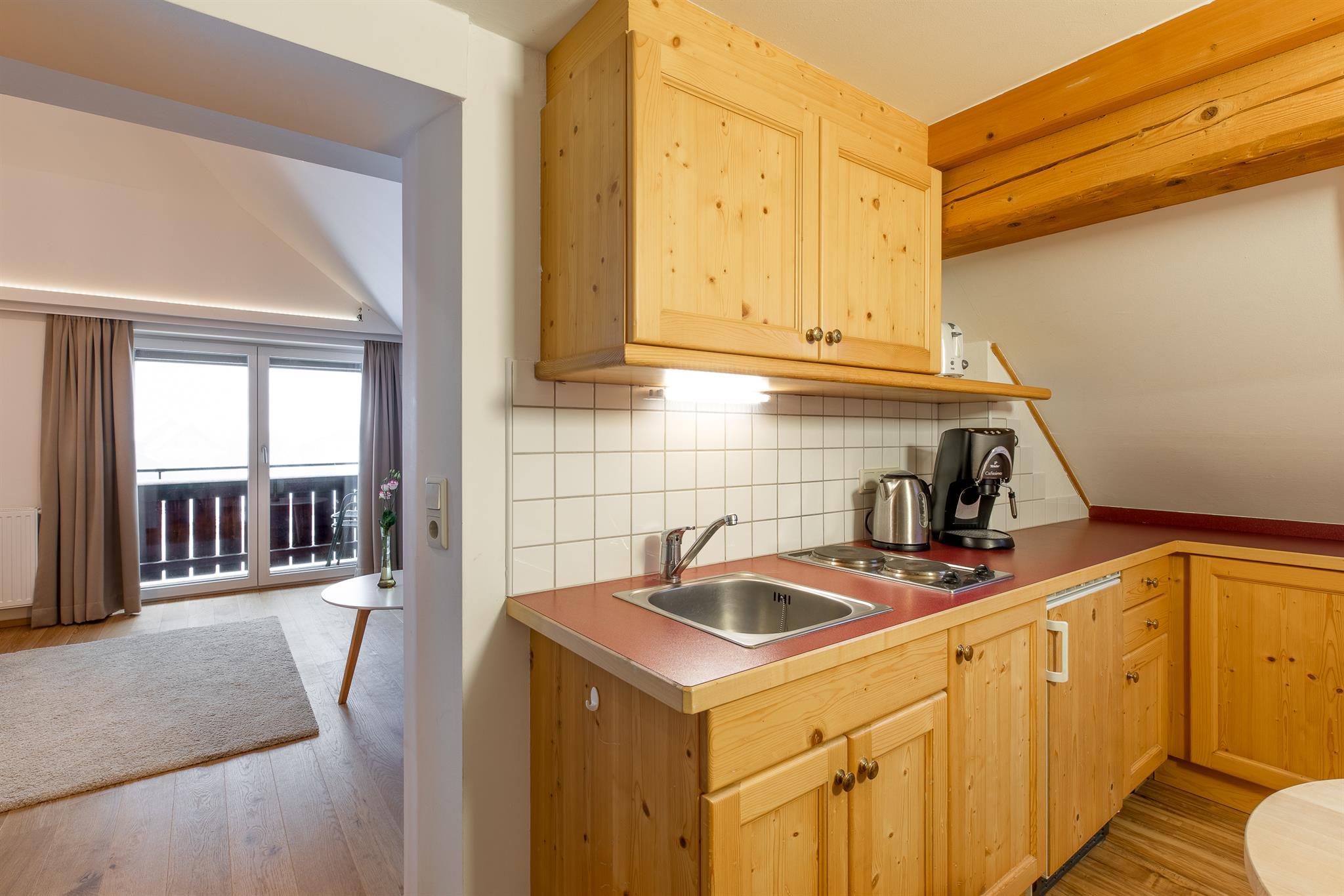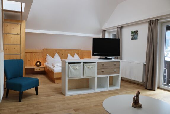 Unsere FW Studio 9 bietet Platz für max. 2 Erwachsene und ein Kind. Die Wohnung besteht aus einem gemütlichen Wohnschlafraum mit Balkon und Blick über das Dorf und in die Berge, FLat-TV, W-Lan gratis, kleiner Küche mit Esstisch und einem geräumigen Badezimmer mit DU/WC, Fön. Bettwäsche, Geschirrausstattung, Wasserkocher, Kaffeemaschine etc. und ein 2 Plattenherd sind vorhanden. Gerne können Sie auch Frühstück dazubuchen.