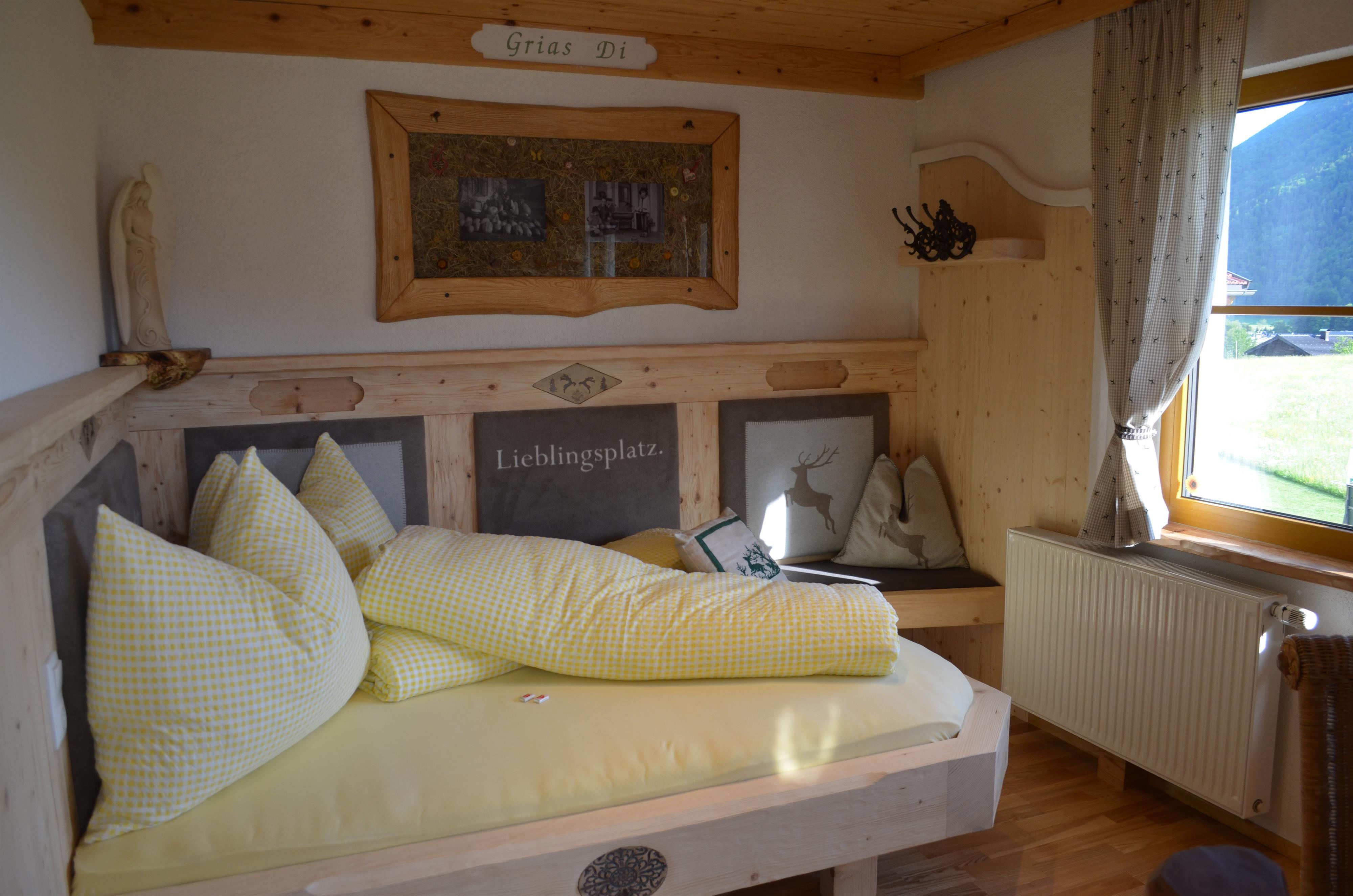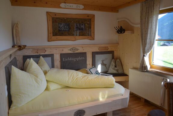 Kleines, gemütliches Vollholz-Zimmer, ausgestattet mit allem, was man braucht. Ruhig und hell, mit schönem Ausblick ins Dorf und auf den Lidaun – ideal für Paare oder Kinder.