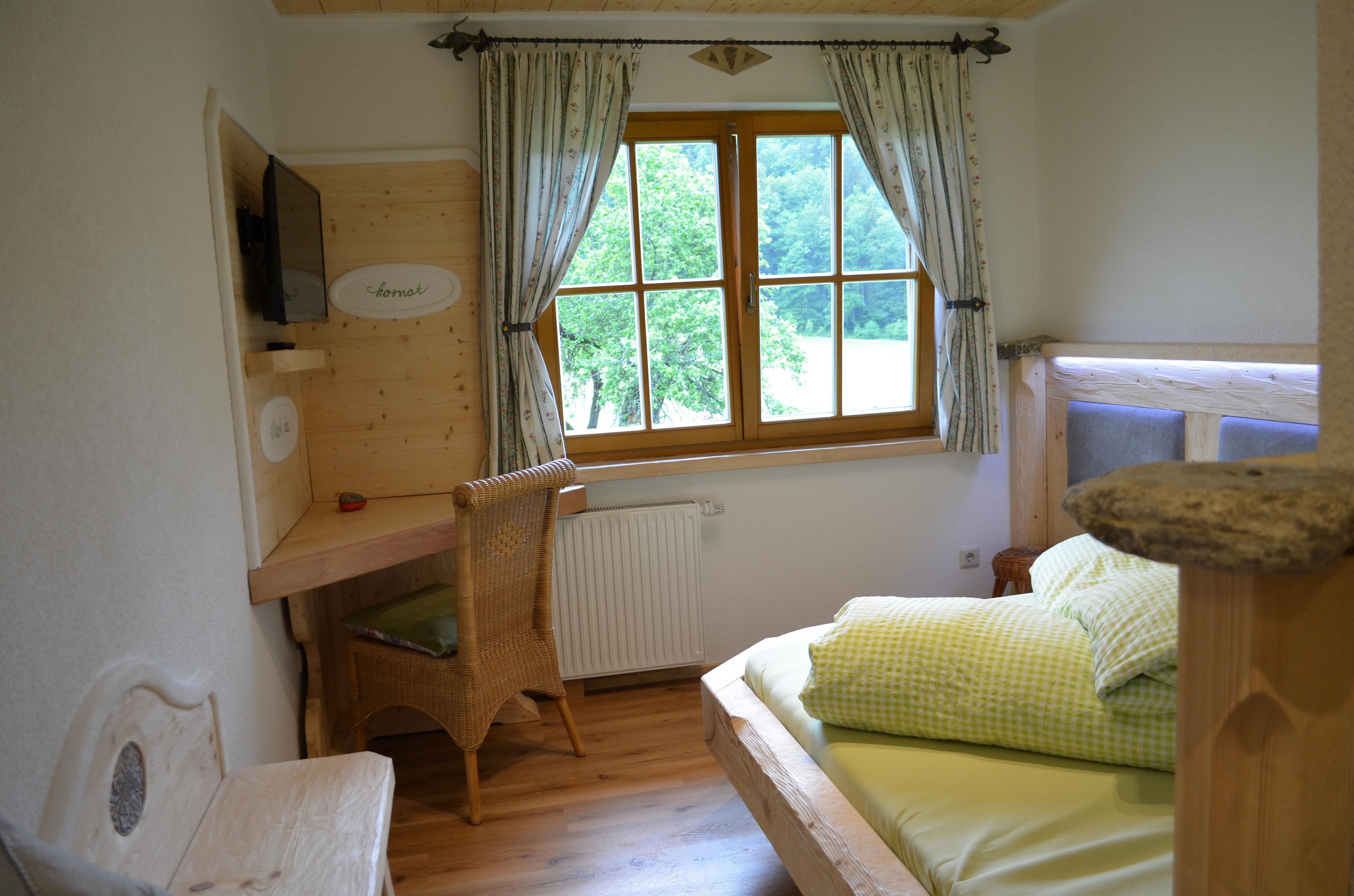 Kleines, kuscheliges Vollholz-Zimmer, ausgestattet mit allem, was man braucht. Ruhig und hell – ideal für Paare oder Kinder.