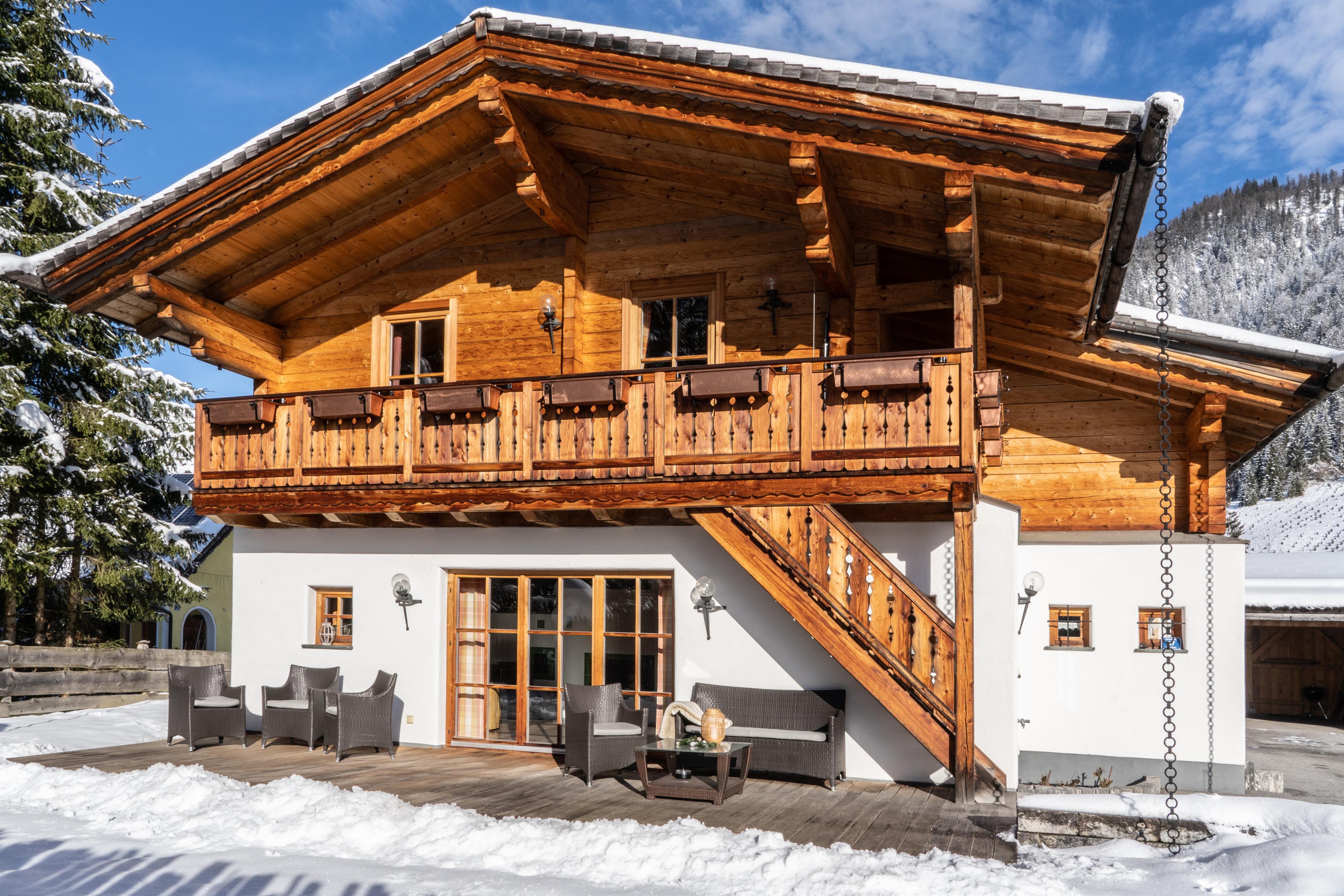 Das komfortable Haus mit vielen Extras liegt auf einem Hochplateau auf etwa 1000 m. Das besondere Raumklima lädt zum Entspannen und Wohlfühlen ein. Der 1. Stock besteht komplett aus massiven Holz. Das Erdgeschoss aus 50 cm starkem massiven Stein, so wie es in Österreich schön früher Tradition war.
