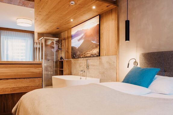 Dieses trendige lifestyle Apartment bietet Ihnen 2 Schlafräume mit gemütlichen Boxspringbetten, eine große Wohnküche zum kochen und relaxen sowie eine großzügige Balkon (5m²). Lage: Süd-östlich mit Blick auf die Hotelanlage/Hof