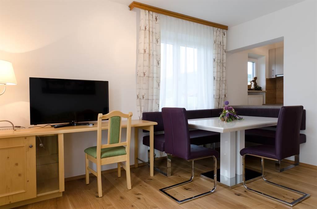 Das Appartement Grießkogel 1 liegt im 2. Stock, hat 3 Schlafzimmer und 3 Bäder. Die Küche ist voll ausgestattet (Geschirrspüler, Backofen, Wasserkocher, Kaffeemaschine, Mikrowelle). Das separate Wohnzimmer hat einen großen Esstisch, Couch und Flachbildfernseher. Kostenloses W-lan ist verfügbar. Vom Balkon aus genießen Sie einen herrlichen Blick auf das Tennengebirge.